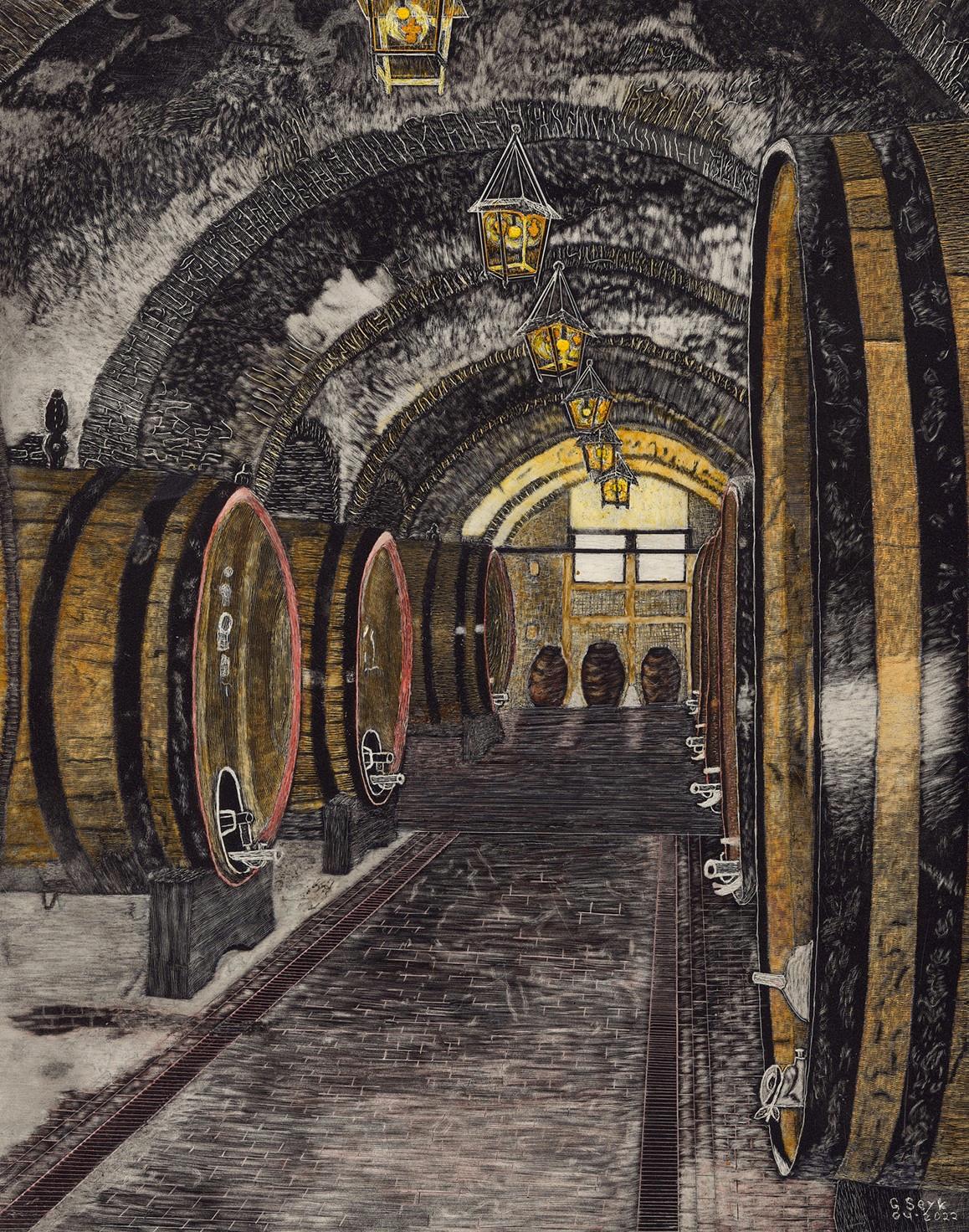Scratchboard FivecenturiesoldfamilyownedMontepulcianod'AbruzzowinecellarinMontepulciano, Italy