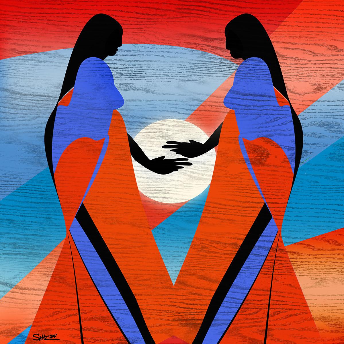 Analogpaperimages(scanned),digitalimages,digitalpaint.Exploringthehierarchythatprivilegescertain formsofartoverothersbasedongenderassociations.Handicraftshavelongbeenregardedaswomen'swork& notdeemedworthyartisticequivalentstothegrandmediumsofpaintingandsculpture.