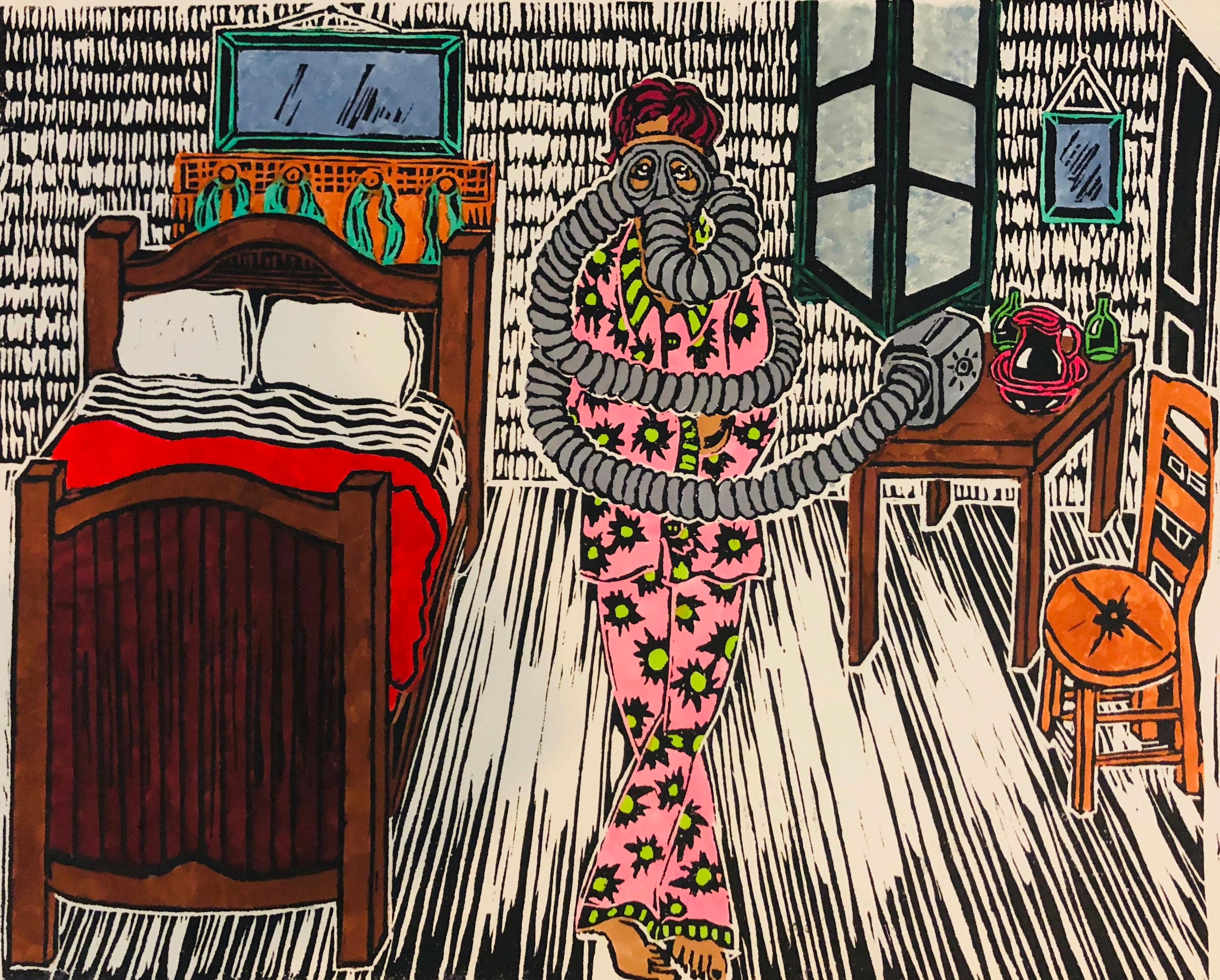 Thisprintisalimitededitionlinoleumreliefprint Handcoloredwithmarkersofmanykinds Allmaterialsused arearchival AW127692928
