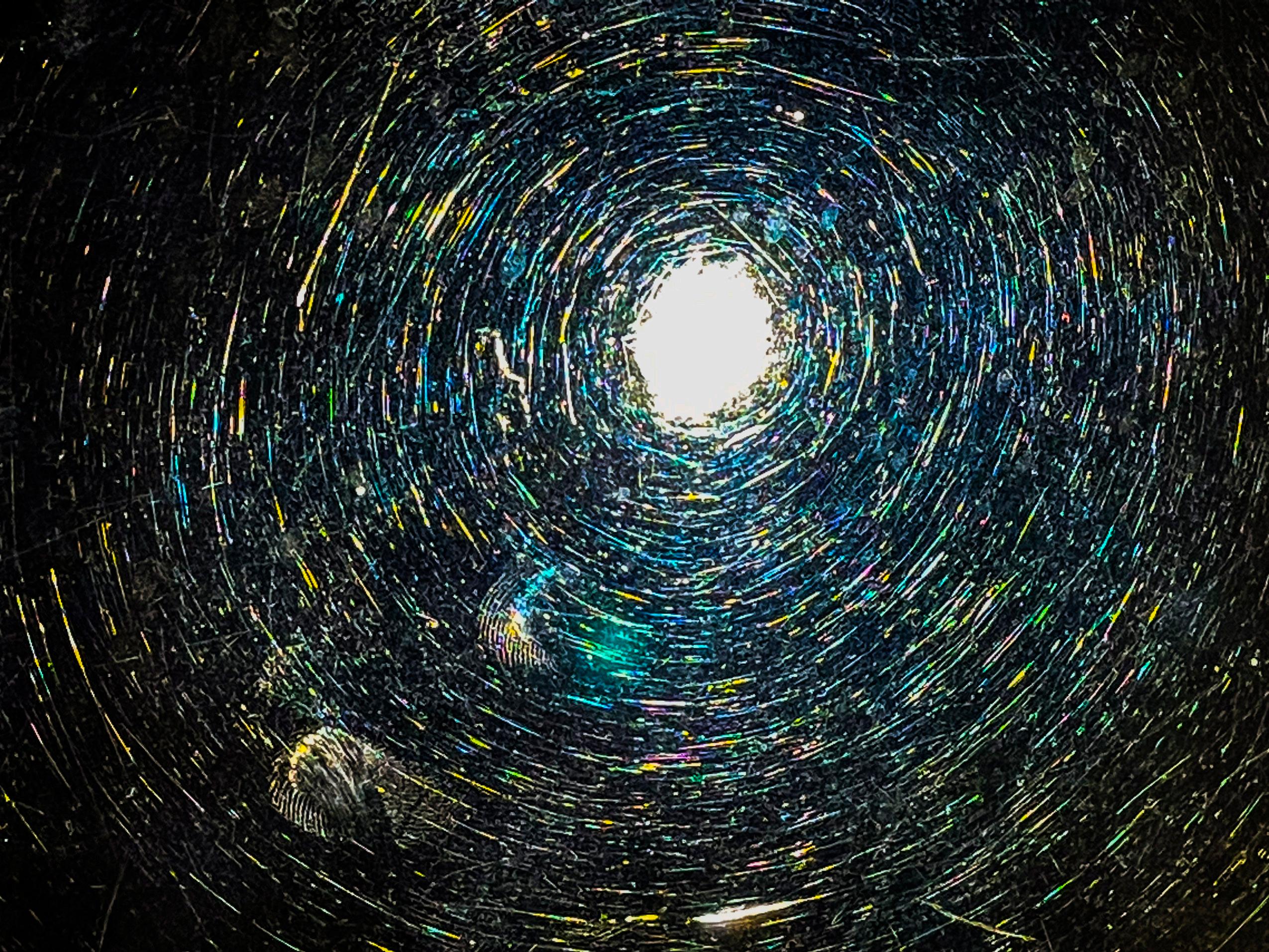 Anintersectionofbrightcolorsrapidlydescendsintoaeeriedarkness