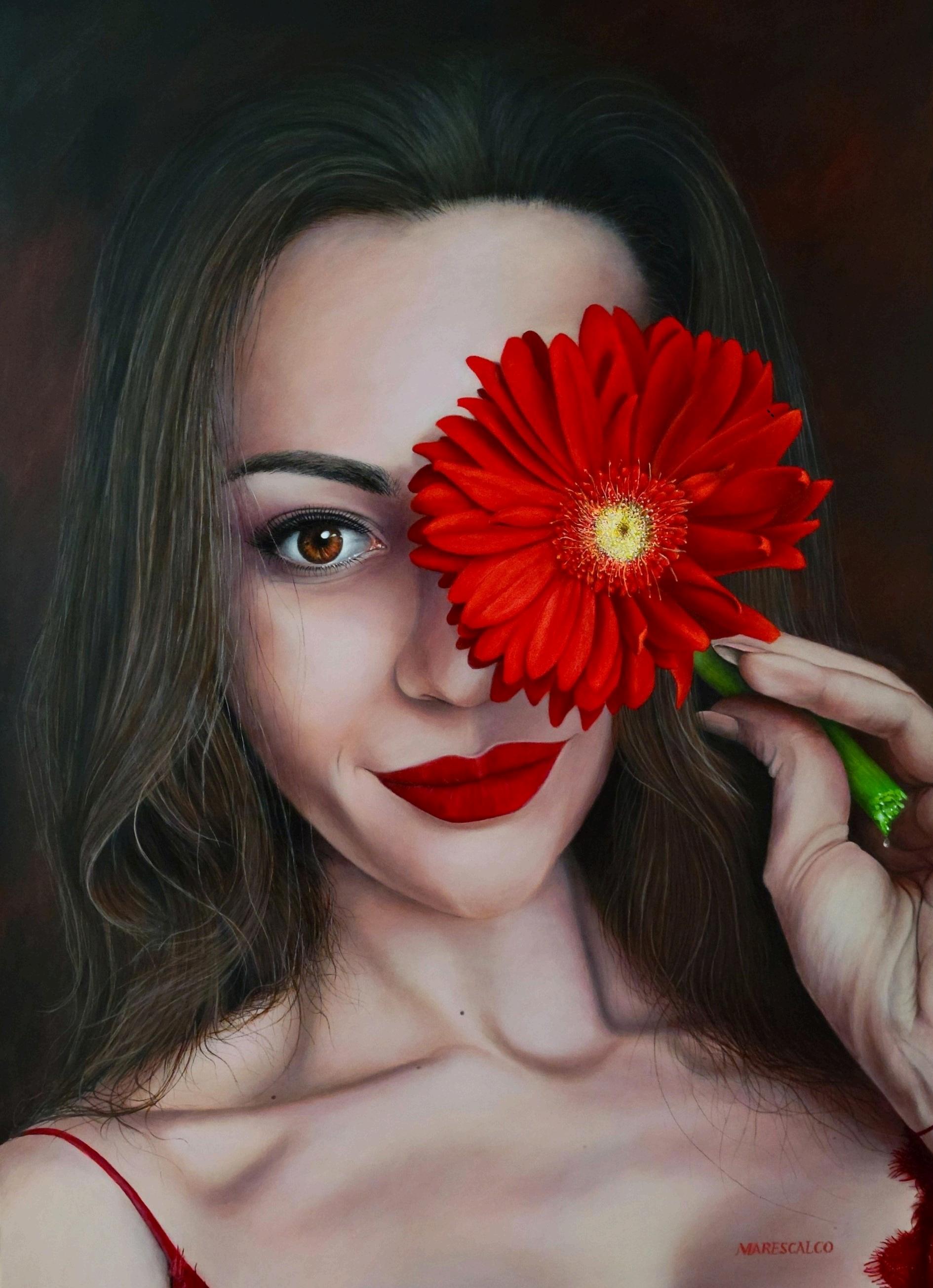 ThemodelisValeriya, afriendofmind Shedidthisposeabout2anhalfyearsagowhenIstartedtopaintthis IhadmanydistractionwhilepaintingGerberDaisy FinelyIsatdownandwasdeterminedto nishthepainting ValeriyaisoneofmyfavoritegirlsIpaint Ihaveusedherinmanyofmypaintings Sheisaverygraciousgirl andlovesthatIchoosetopaintherinmanyofmypainting