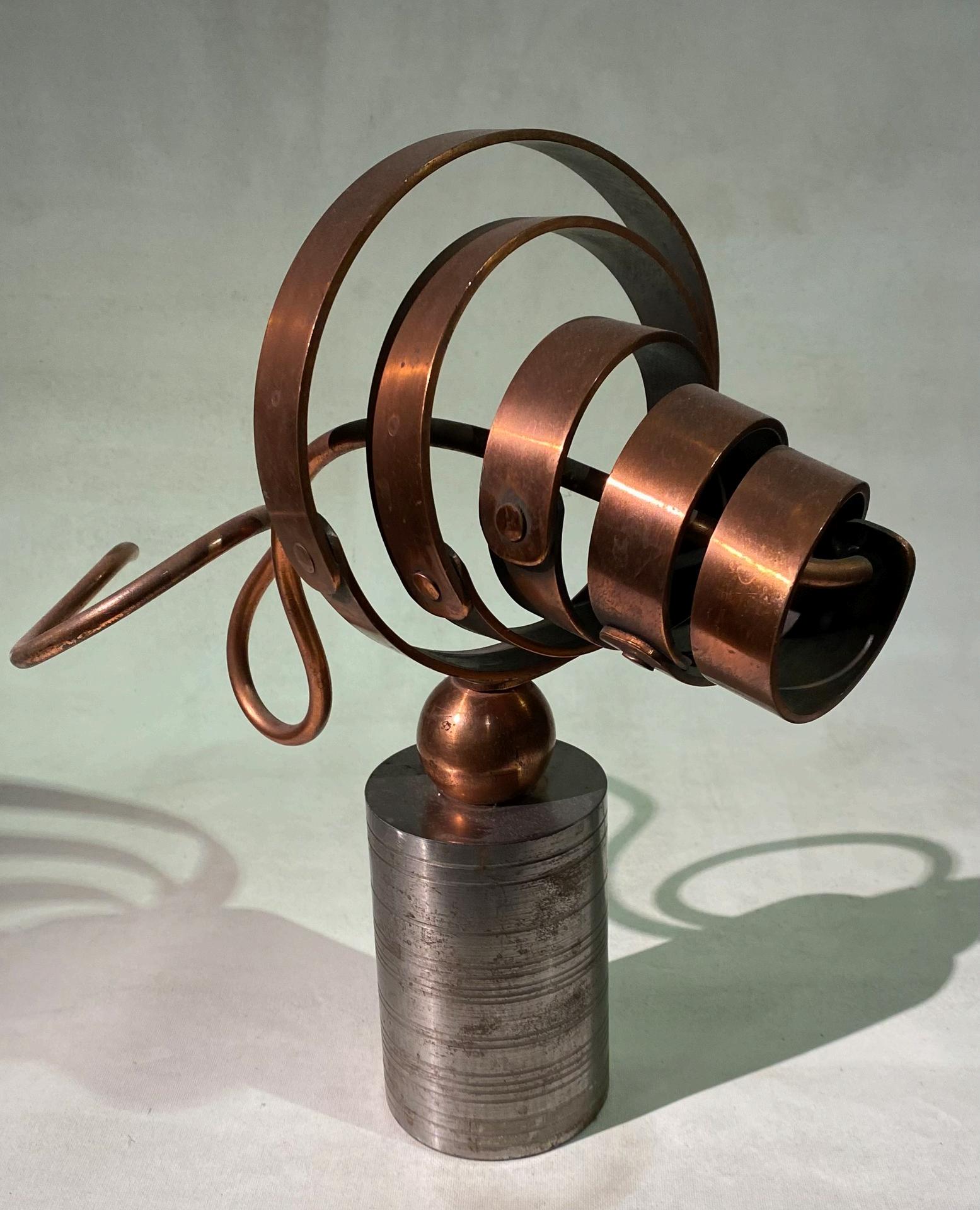 Thisworkismadebysteam-bentbranchesandglazedstoneware Ifoundthebranchesfromacut-downtreein Chicago Isteam-bentandthenjoinedthemtomaketheshapeofaswirl Theyhavebeengivenanewlifeinthe formofaswirlthatevokestheupwardandoutwardmovementofgrowthandrepresentthecyclicalnatureof growth Theceramicpieceunderitwasmadeininspirationofatreeroot Thiscouldalsobeseenasa representationoftheunseenenergyconcentrateditsprouts
