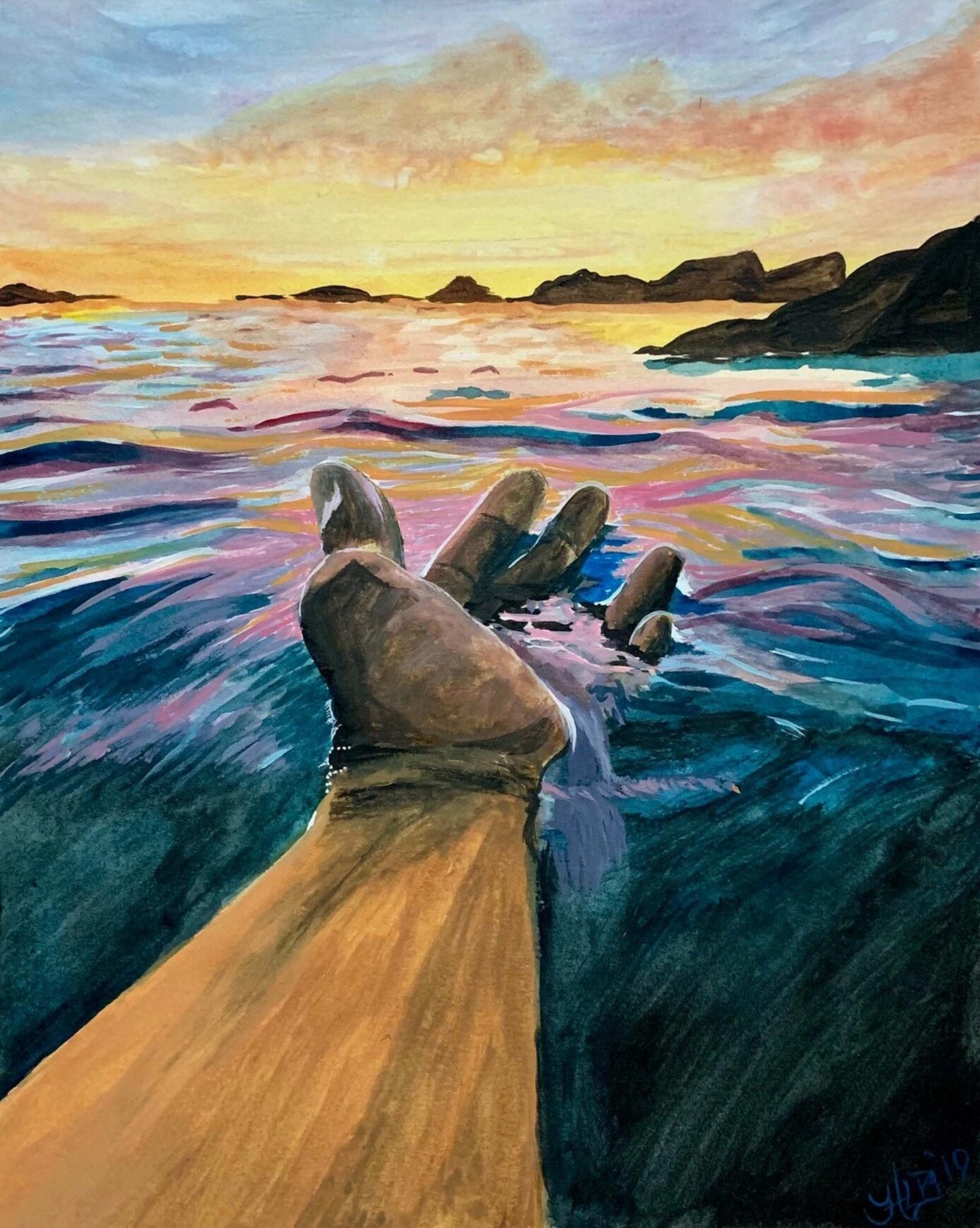 Theartworkisavisuallystunningbas-reliefthatbreathesnewlifeintothetragicShakespeareancharacterof Ophelia Setagainstavividturquoisebackdrop, whichrepresentsthewatersinwhichOpheliameetsherend, the gureisatoncepeacefulandpoignant Theturbulentswirlsofherredhaircreateadramaticcontrastagainst theturquoise, capturingtheviewer’sattentionandsymbolizingthechaosthatenvelopsherinher nalmoments TheserenityofOphelia’sexpressionbeliestheturmoilthatledtoherdemise, assheliessuspendedinthewater, asymbolofhervulnerabilityandthefragilityoflifeitself Thiscalmcountenanceaddstothepainting’s emotionaldepth, evokingasenseofsorrowandloss There’sapoignantbeautyinthewayherhair owslikethe wateritself, anaturalforcethat, intheplay, ultimatelyclaimsher TheartworkcapturestheessenceofOphelia’s characterasdepictedin “Hamlet ”