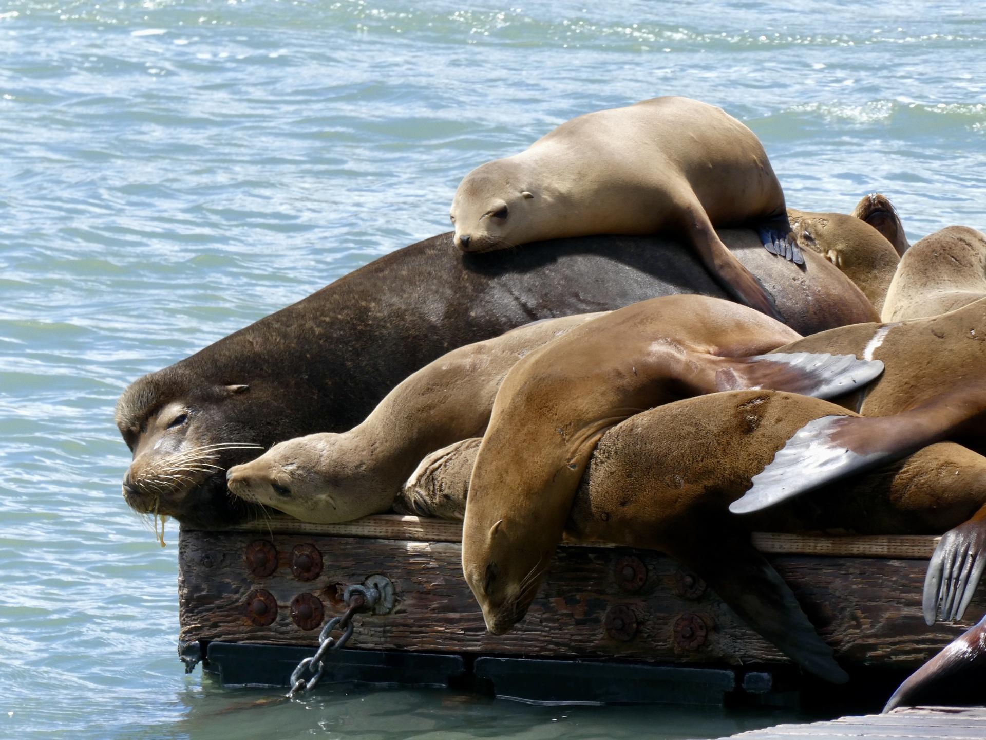 Pace Photography W:36 H:24 in 2022 Agroupofsealions, huddledtogetherwhilebaskinginthesunatFisherman'sWharfinSanFrancisco, California AW127662880 ♡