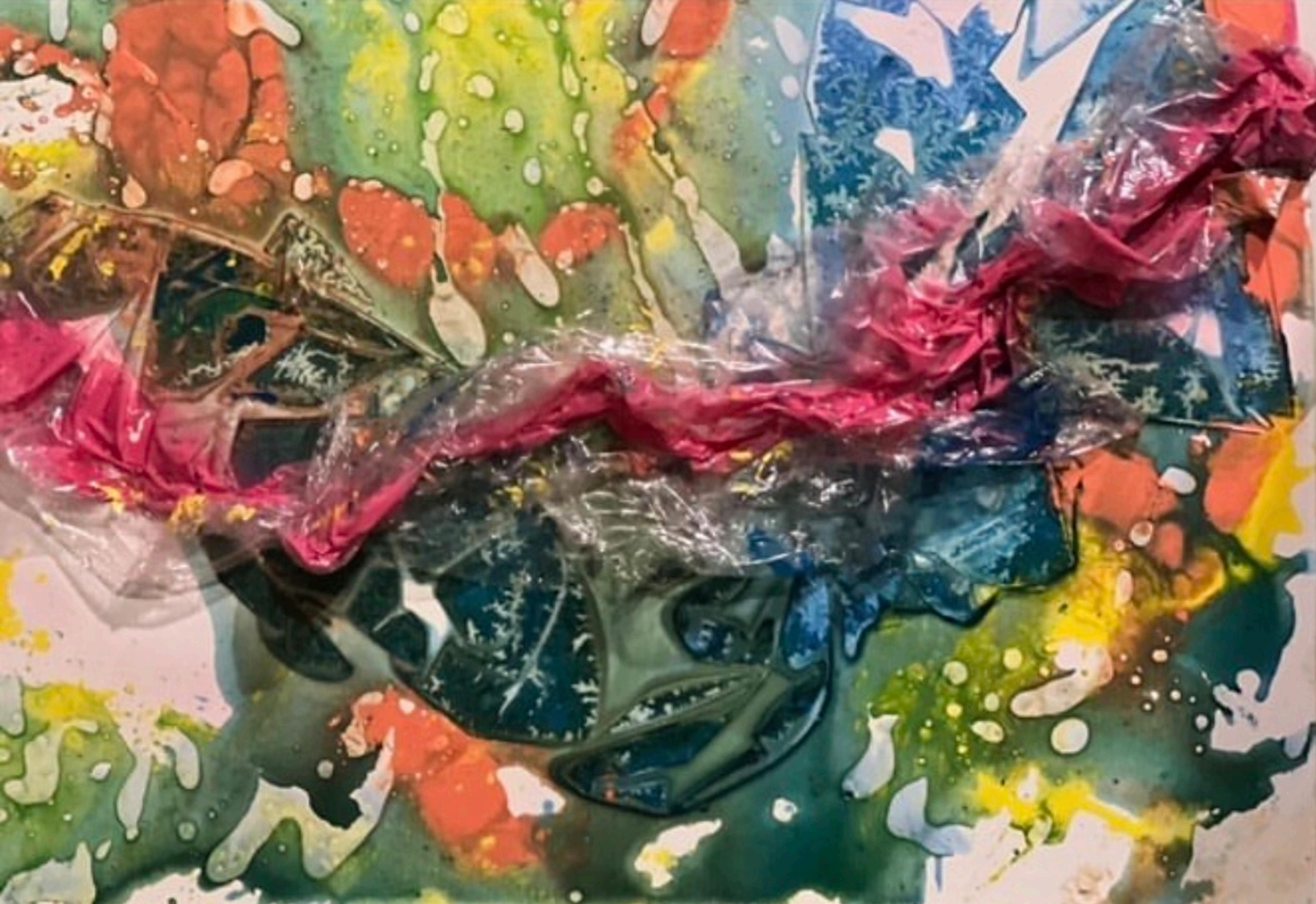 Acrylic, oilpastels, sand, resin Byconductinganabstractstudyusingvariousmediaandtechniques, andthen creatingitinalargeformat, theresultwasadelicate, harmonious, andexquisiteinterplaybetweentheselected colors, whichappeartobeinconstantmotion, thuskeepingourgazemovingfromonepointtoanother