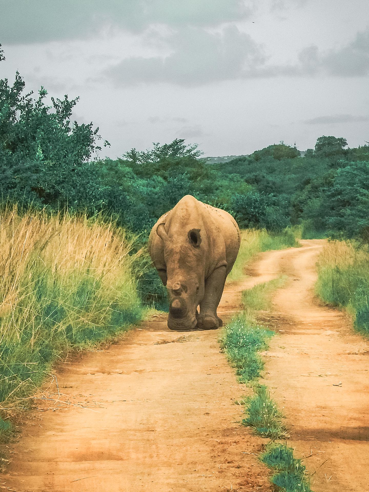 WhileonsafariatHluhluweImfoloziGameReserveinSouthAfrica, oursafarivehicleencounteredthislonewhite rhinowalkingtowardus