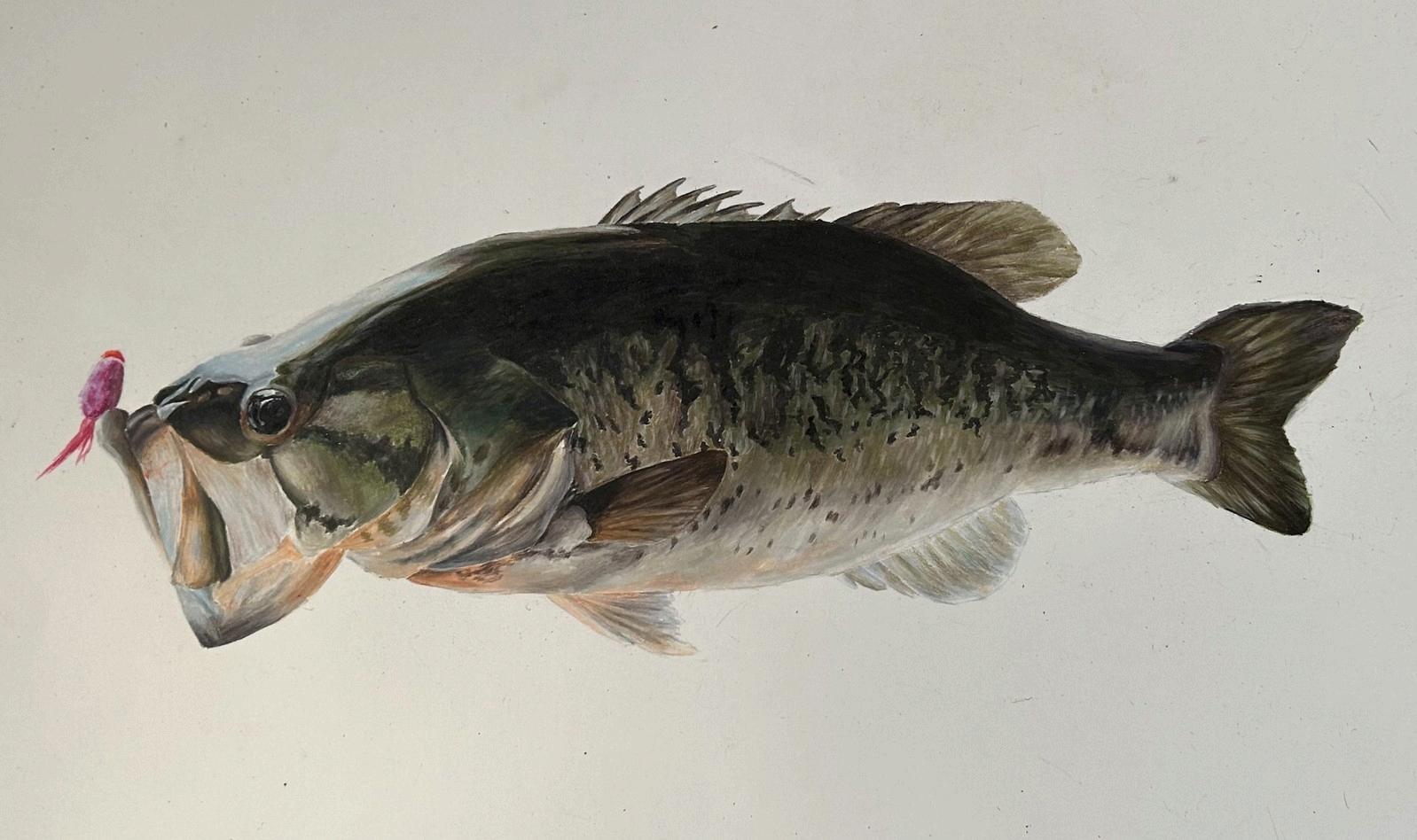 Icaughtthislargemouthbassonaquietafternoon, andpaintedittocapturethatpersonalmoment Thedetailed realismre ectsmyconnectionwithnatureandthememoryofthecatch