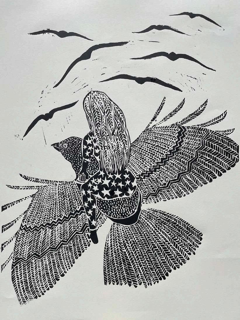 Printmaking, Linoprint, Relief W:9 H:12 in 2023