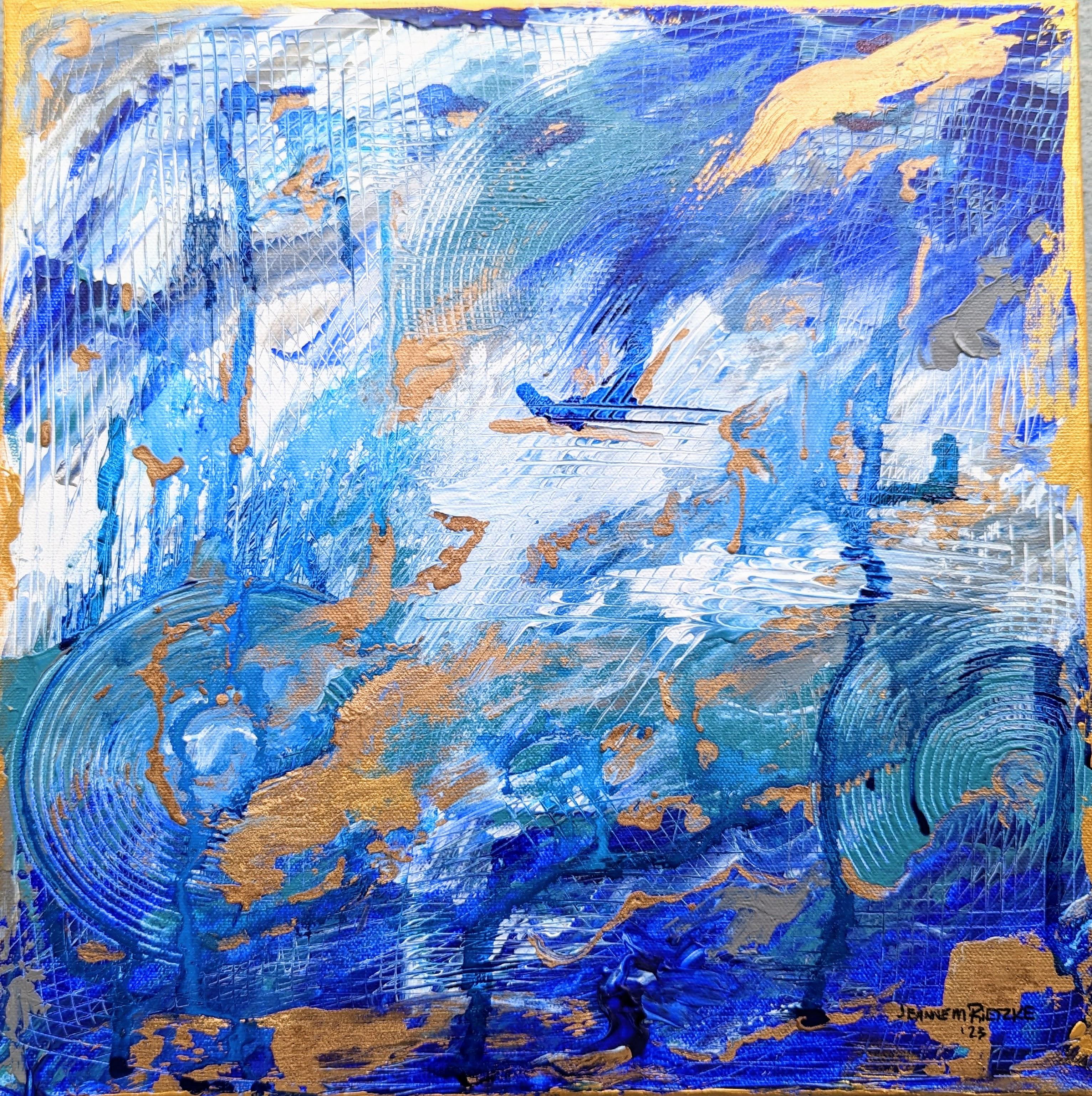 Elements exhibizone com/elements2023 10 Jeanne Rietzke Painting, Mixed Media Sunlight on Water Painting, Mixed Media on Canvas W:12 H:12 in 2023 AW127690302 ♡