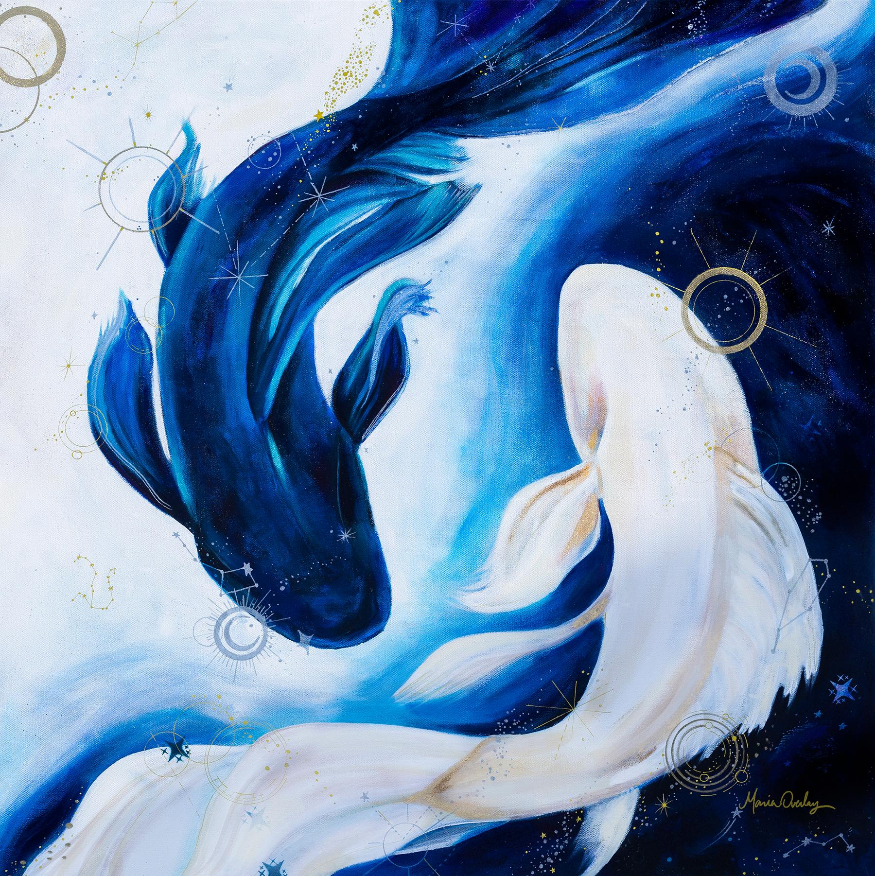 Balanceisamixedmediaandoilpainting createdonalargecanvas Thepaintinghasacelestialandyinand yangfeeling Thebalancebetweenlightanddark Asparkly, contrastedpainting (ScanQRcodetolearnmore rateandcomment)