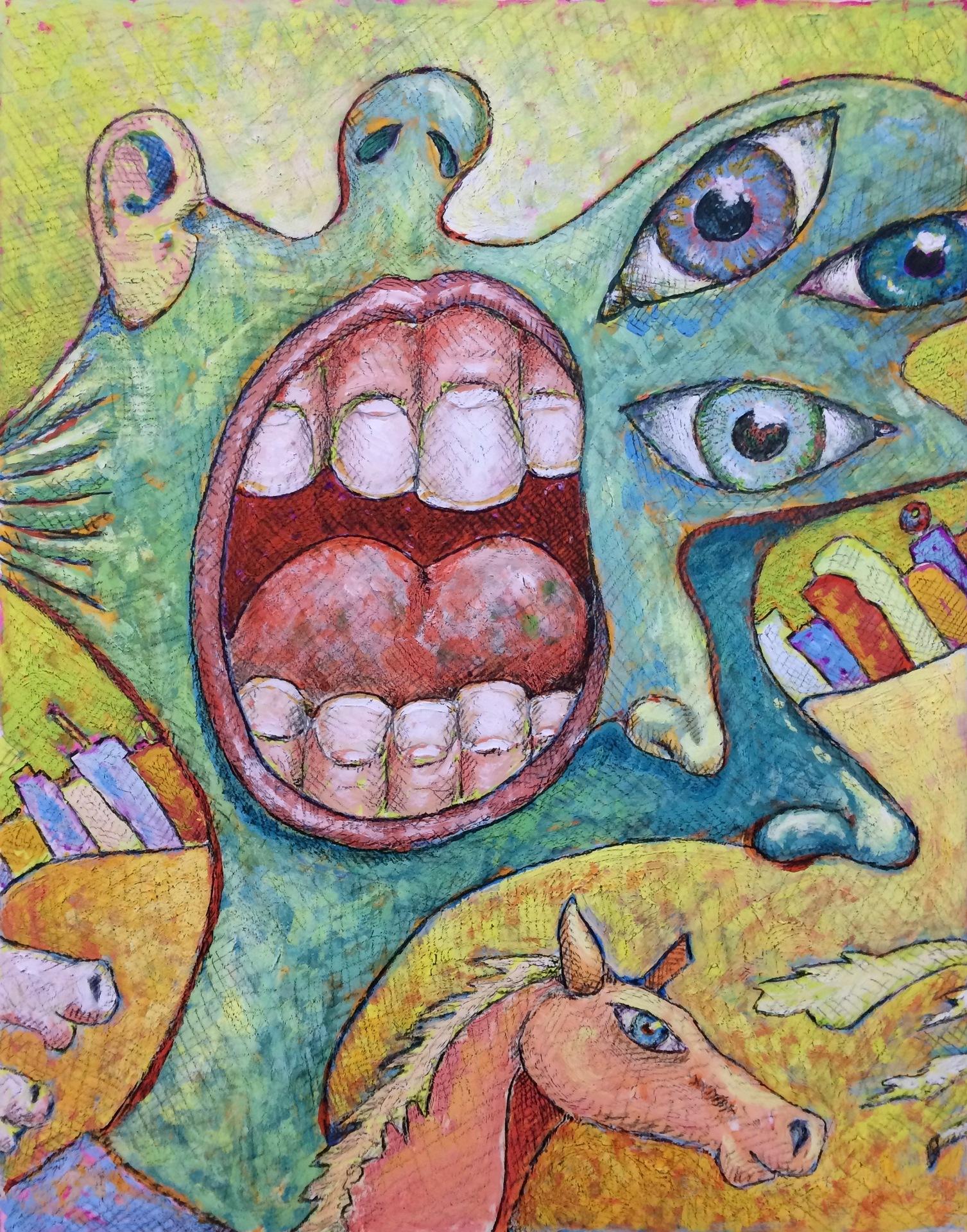 Drawing, Color Pencil, Gouache, Pen W:14 H:17 in 2022