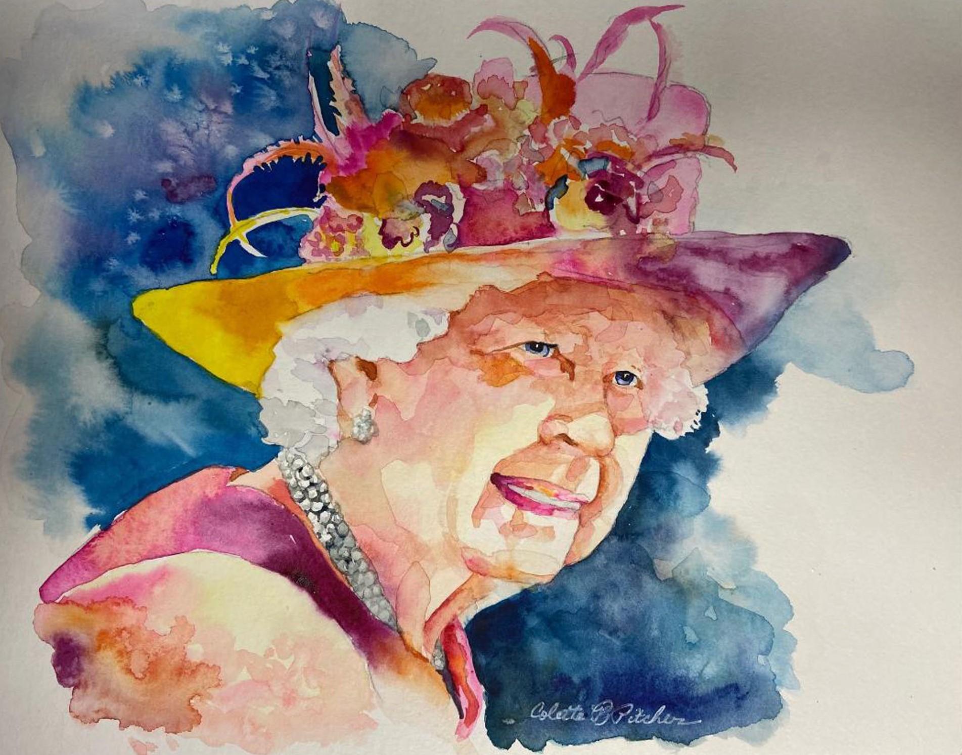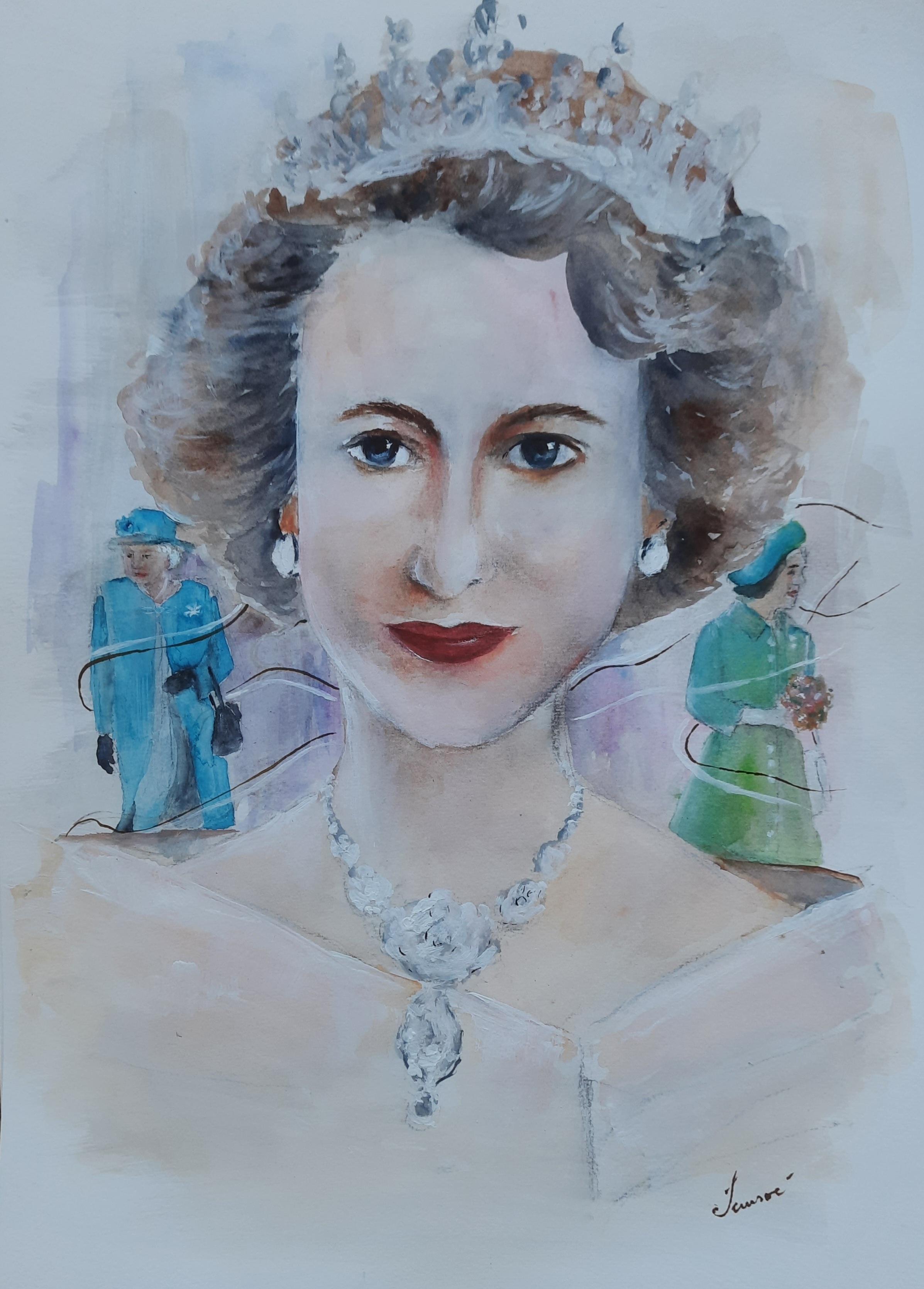 The Queen Elizabeth II Painting, Watercolor on Paper W:45 H:61 cm 2022 AW127011820 ♡