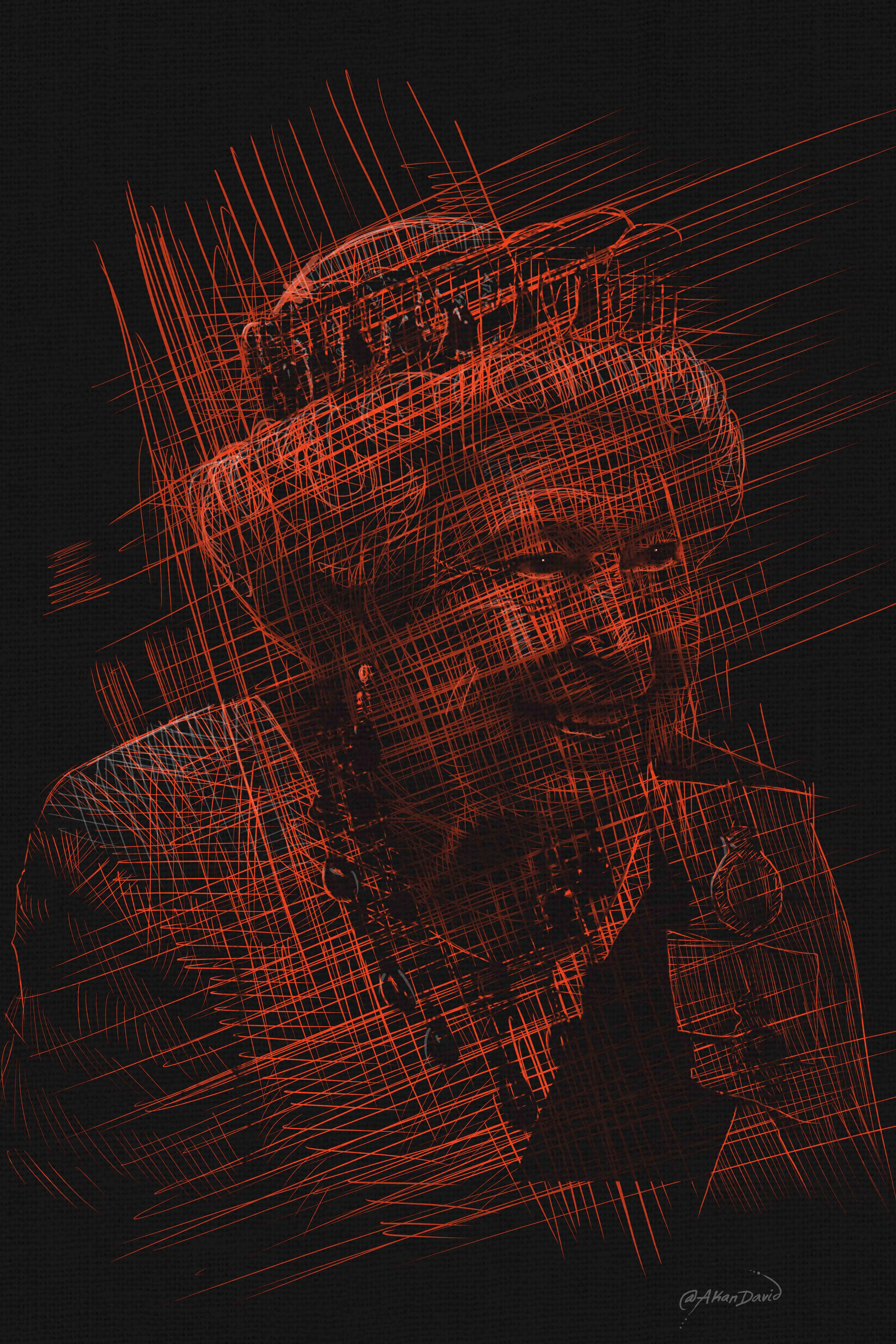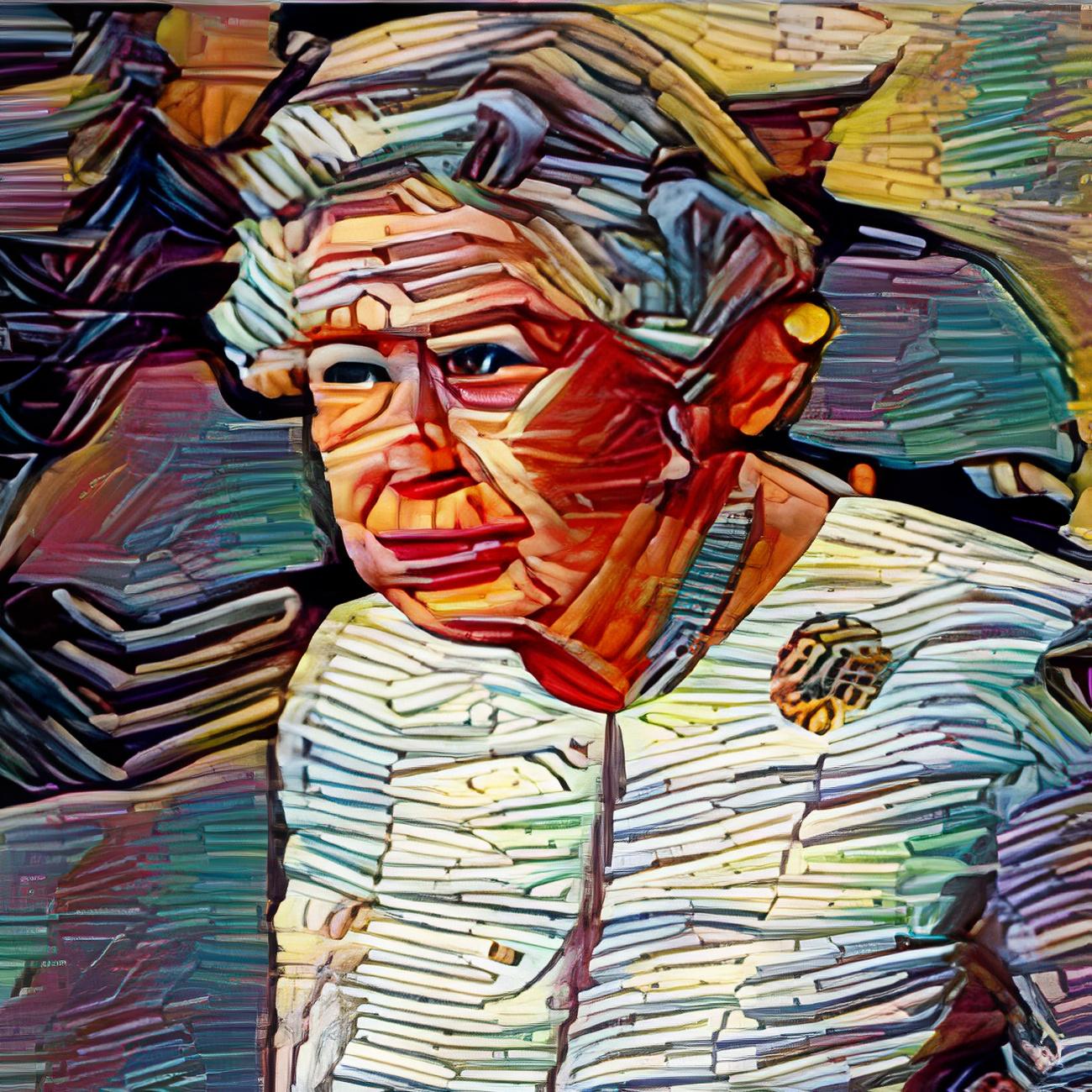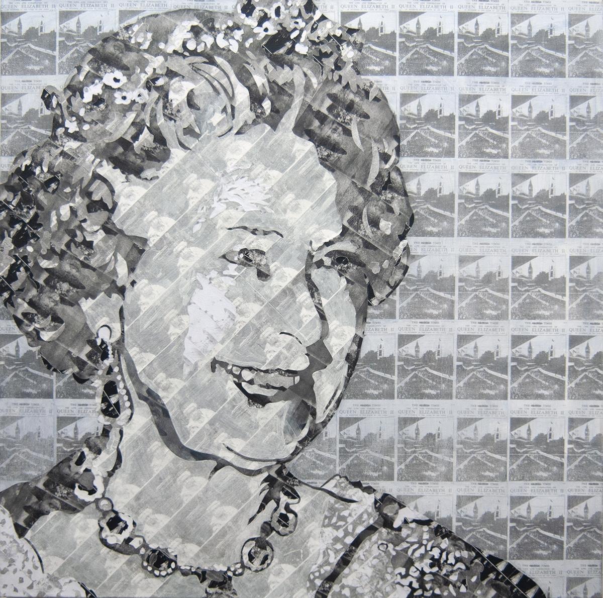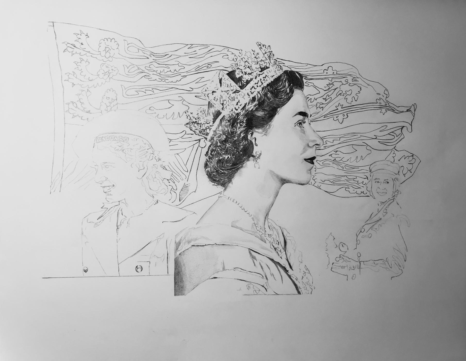 Graphics, Illustration, Painting, Mixed Media, Drawing Elizabeth II Digital Painting, Crosshatching on Cardboard, Canvas W:24 H:36 in 2022 AW127740050 ♡