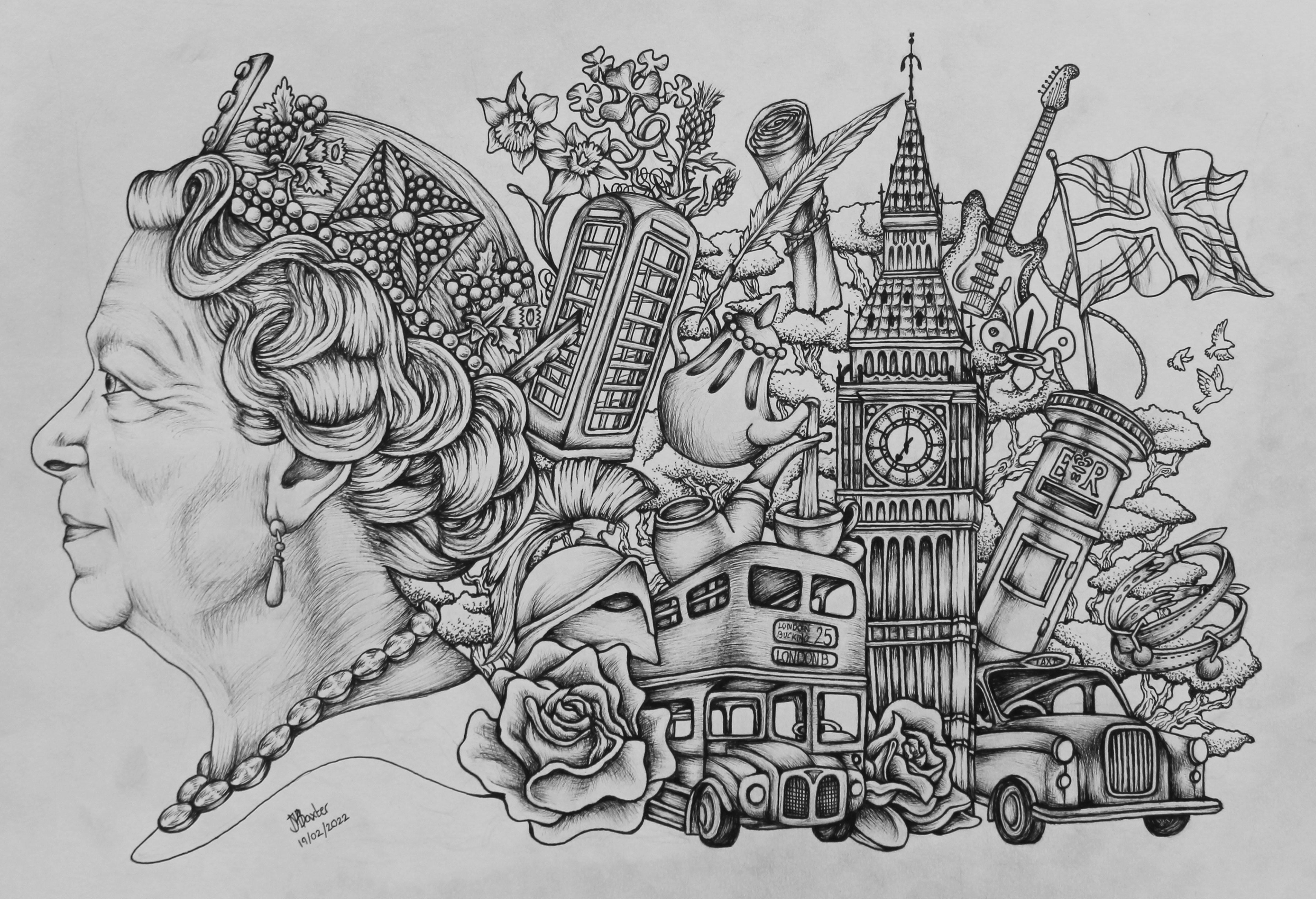Unapologetically British Drawing, Pen Ink Drawing on Paper W:42 H:29 70 cm 2022 AW127627814 ♡