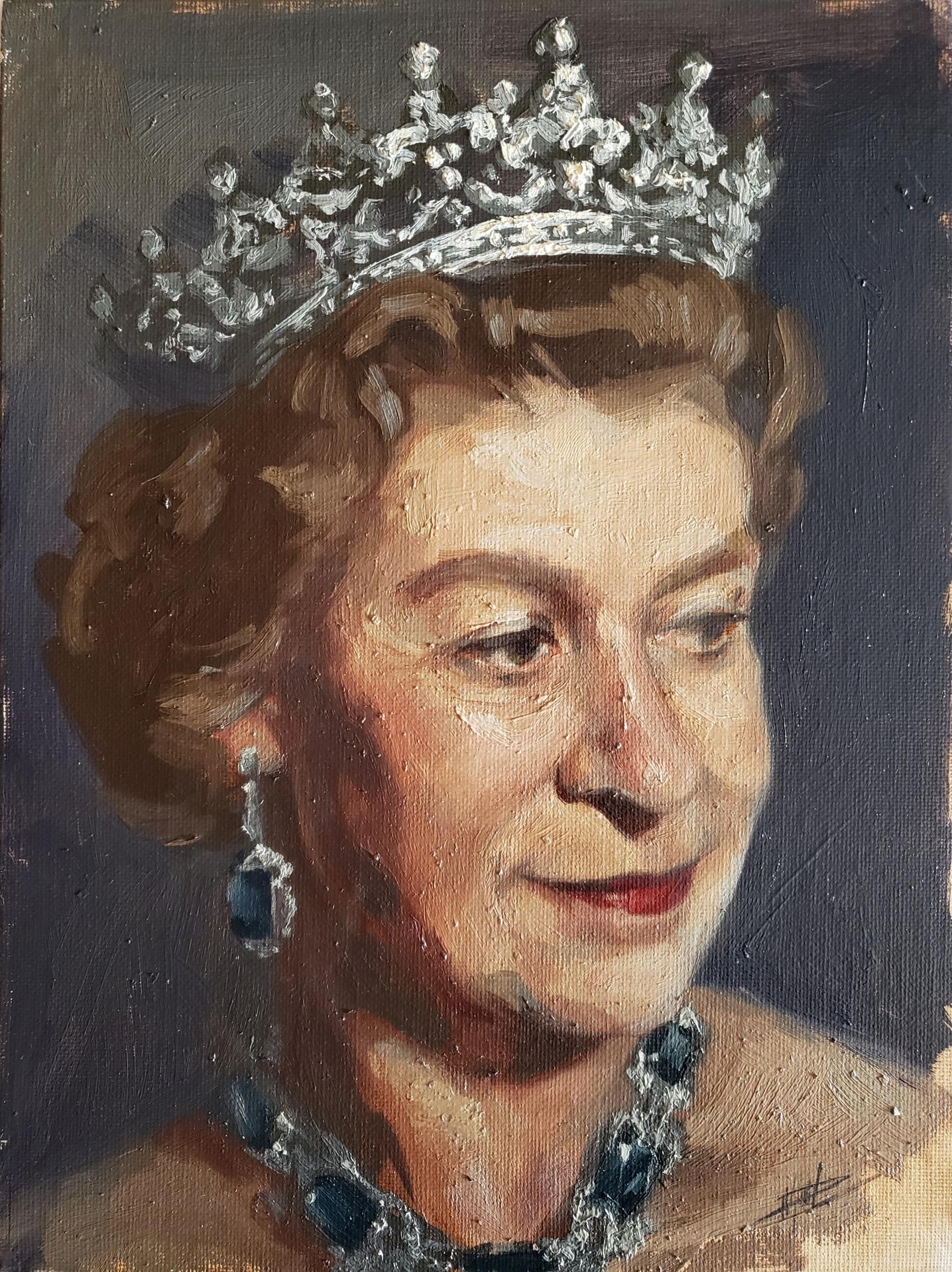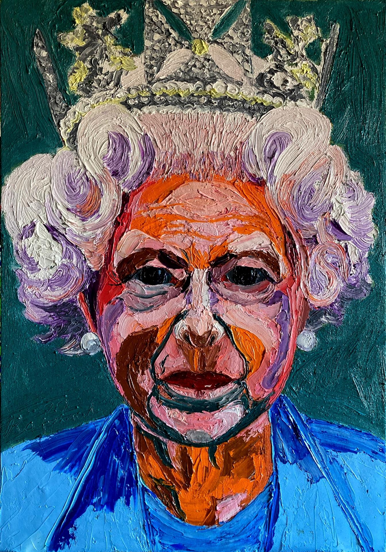 Portrait of Queen Elizabeth II Mixed Media, Oil Color on Board W:30 H:25 cm 2022 AW127455312 ♡