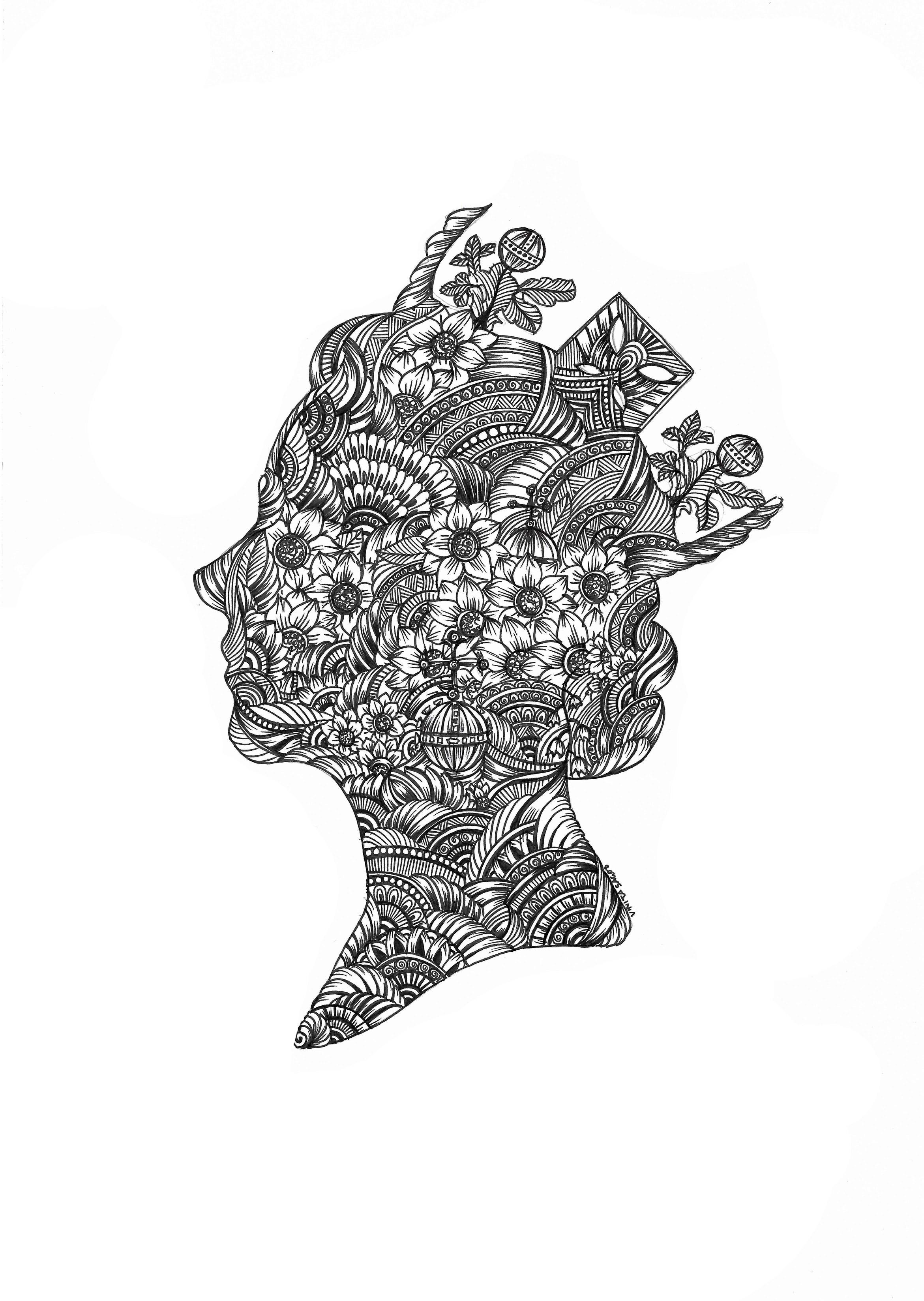 Drawing, Painting Crowned in Splendor Drawing, Pen Ink Drawing on Paper W:7 H:5 in 2022 AW127047426 ♡