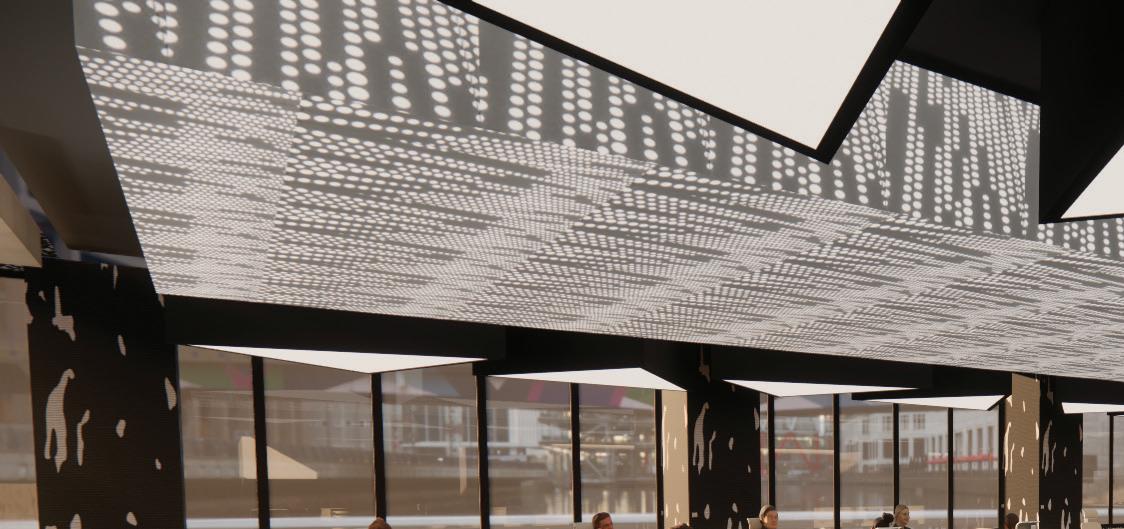 The interior concept echoes the experience of a runway show, brought to life through the use of tactile materials and unconventional shapes. Highlighting the individuality of models and the distinct character of garments creates a futuristic aesthetic. The final design merges a timeless environment with futuristic innovation that results in a sustainably functional space.