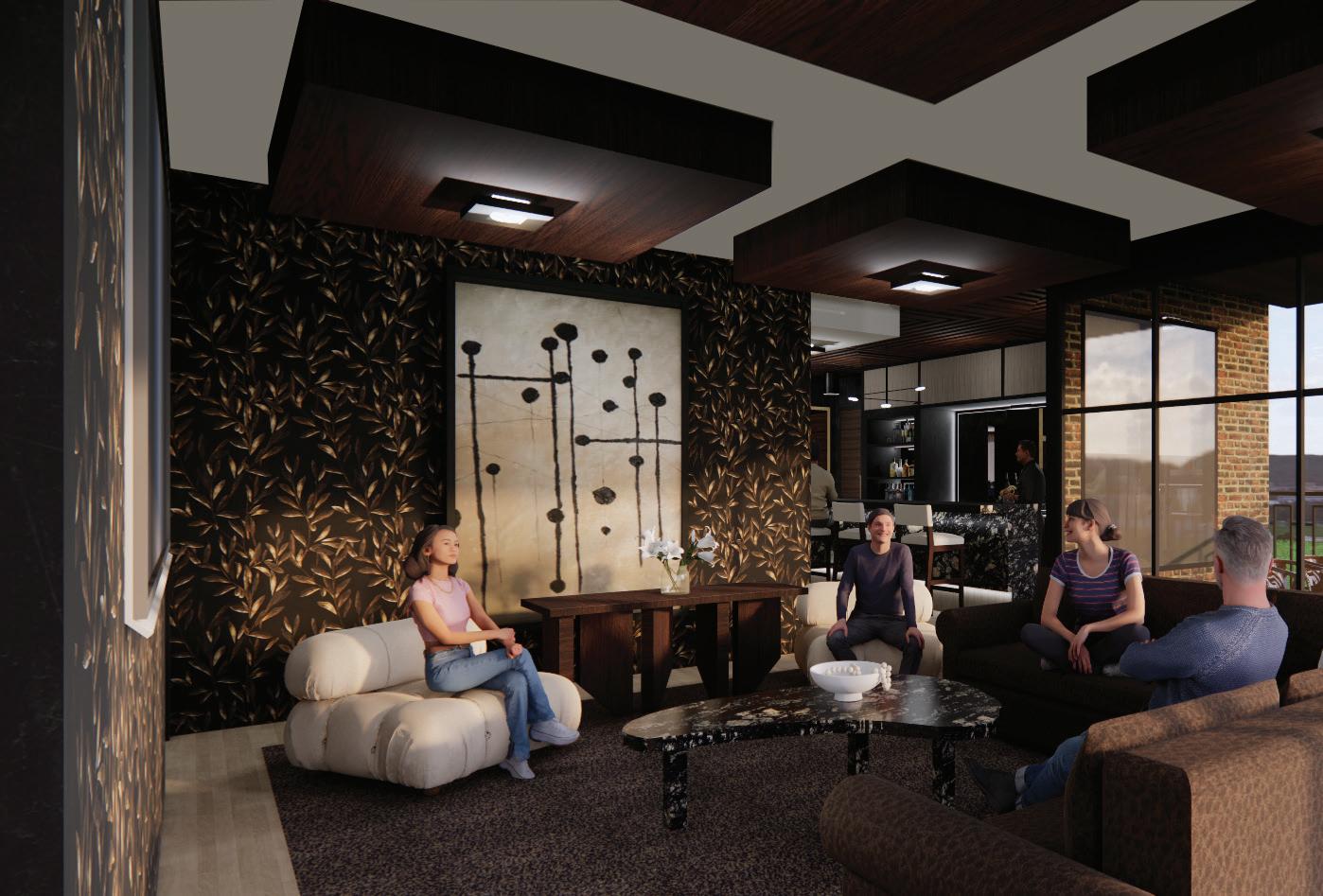 This lounge strikes a perfect balance between luxury and comfort, creating a space that feels both refined and effortlessly cozy.