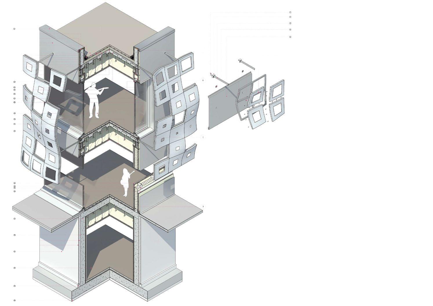 phase consisted of analysing the construction of Musical Studies Centre in Galicia, Spain, and this case study through a detailed 3D model and details.