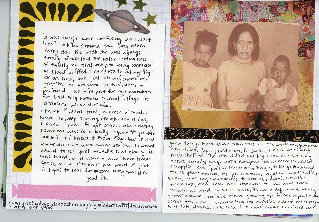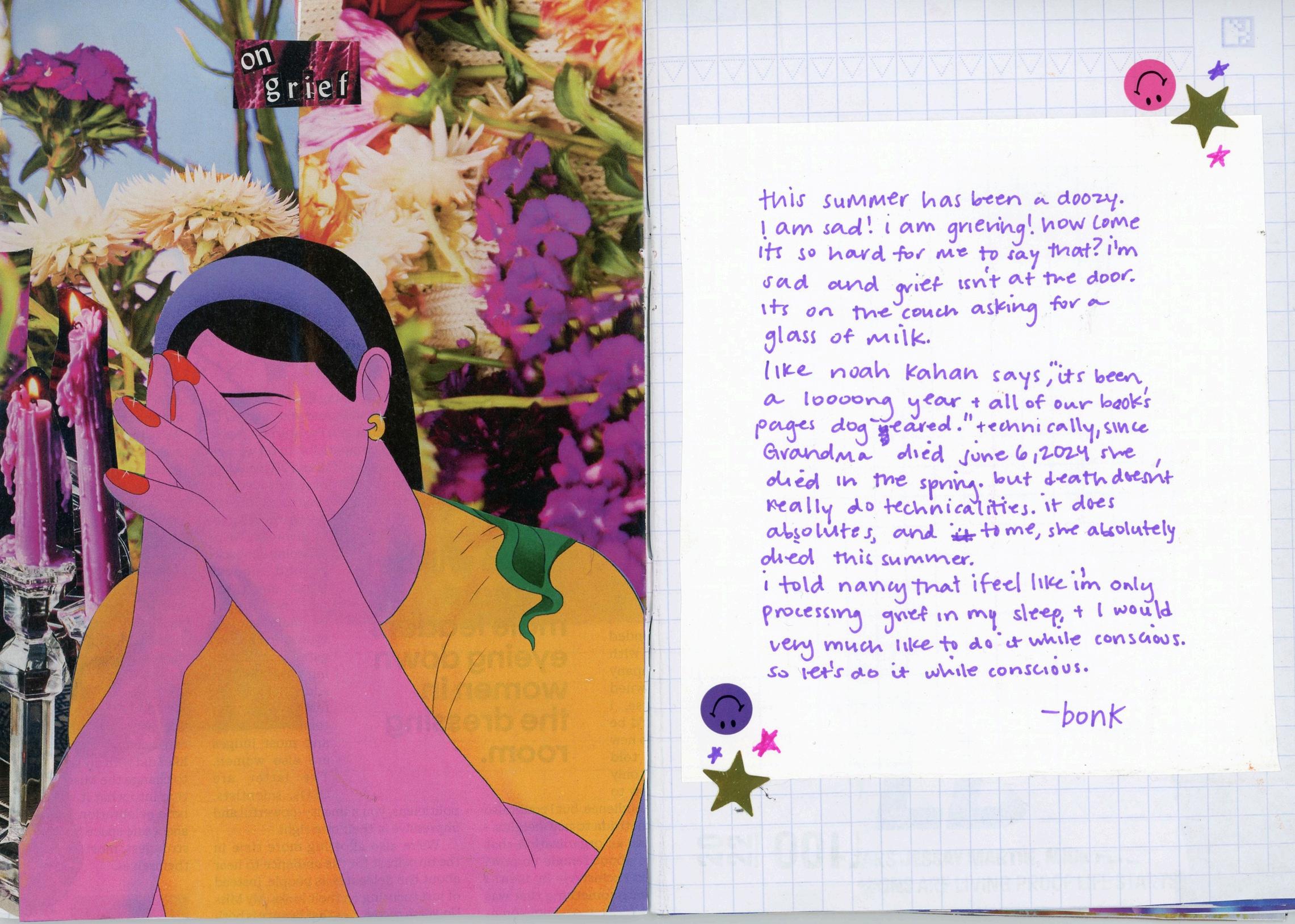 On June 6, 2024, my grandmother passed away. This was a major event in my life: she was the first person that played a significant, central role in my life to die. I made this zine to process her death, my grief, and what her transition meant to my extended family.