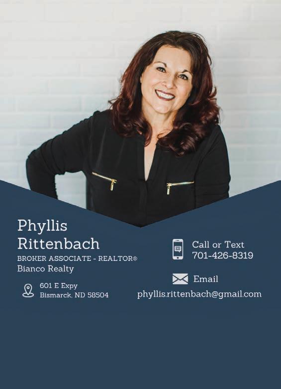Country Living • Rural NW Bismarck Paved Roads • Walking Trails #3413386 $75,000 “THE RANCH” LOT Low Specials • SouthBay • Open Concept 3 Bedrooms • 3 Baths • Quartz Countertops #4000946 $344,900 NEW TWINHOME Upgrades • Open Floor Plan Walkout Basement • Fenced Yard #4002548 $563,000 RANCH STYLE Spacious, 5 BR, 4 BA, Open Concept Curb Appeal, 3,904 Sq. Ft. #4003713 $649,000 PROMONTORY POINT RANCH 8-Plex Apartment Building Maintenance Free Exterior #4004160 $600,000 GREAT INVESTMENT PROPERTY 1 Acre, Mature Trees, Privacy Character, A Must See #4004002 $799,500 ONE-OF-A-KIND Iconic Super Slide Amusement Park Once In A Lifetime Chance To Own #3411724 $795,000 AMUSEMENT PARK FOR SALE Fenced Yard • Recently Painted 2,016 Sq. Ft. • 4 Beds • 2 Baths #4002470 $235,000 PARK-LIKE YARD PENDING PENDING New Construction • 3 BR • 3 BA Maintenance Free • Quartz Countertops #4000999 $349,900 SOUTHBAY TWINHOME SOLDSOLD