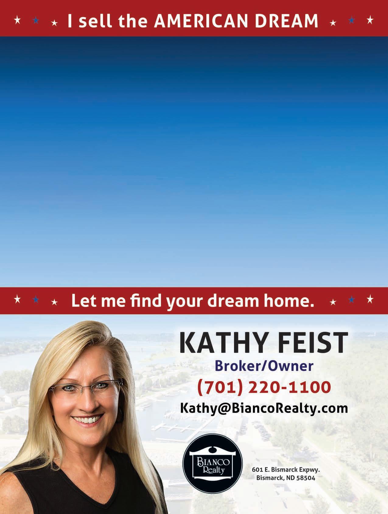 1324 5TH AVENUE, WASHBURN Small town charm. $92,500 #4005486 7605 MULLIGAN WAY, BISMARCK “The Meadows” at Hawktree Golf Community. $598,000 #4005822 4600 37TH AVENUE NW, MANDAN 4 beds, 3 baths, triple garage, huge yard. $299,900 #4005487 4140 SELKIRK ROAD, BISMARCK 4-stall garage. $499,500 #4004239 1817 MARIAN DRIVE, BISMARCK Walkout ranch style. $289,900 #4004202 “FIND ME ON FACEBOOK” 3515 PALMER PLACE, BISMARCK New patio home by Rudnick Construction. $749,500 #4000401 922 E OWENS AVENUE #6, BISMARCK Affordable condo with 3 beds & 3 baths. $184,000 #4005919 SOLD SOLD 1612 RIVER DRIVE NE, MANDAN Offer accepted in 4 days! $559,900 #4005516 PENDING PENDING PENDING LOTS FOR SALE 700 BRANDING IRON DRIVE BISMARCK $108,000 717 BRANDING IRON DRIVE BISMARCK $109,000 1914 N 26TH STREET BISMARCK $69,900 Let my experience work for you! 601 6TH STREET NE, MANDAN Offer accepted 1st day on the market! $170,000 #4005312 SOLD 2040 N 3RD STREET, BISMARCK NW Bismarck ranch. $319,000 #4004347 SOLD
