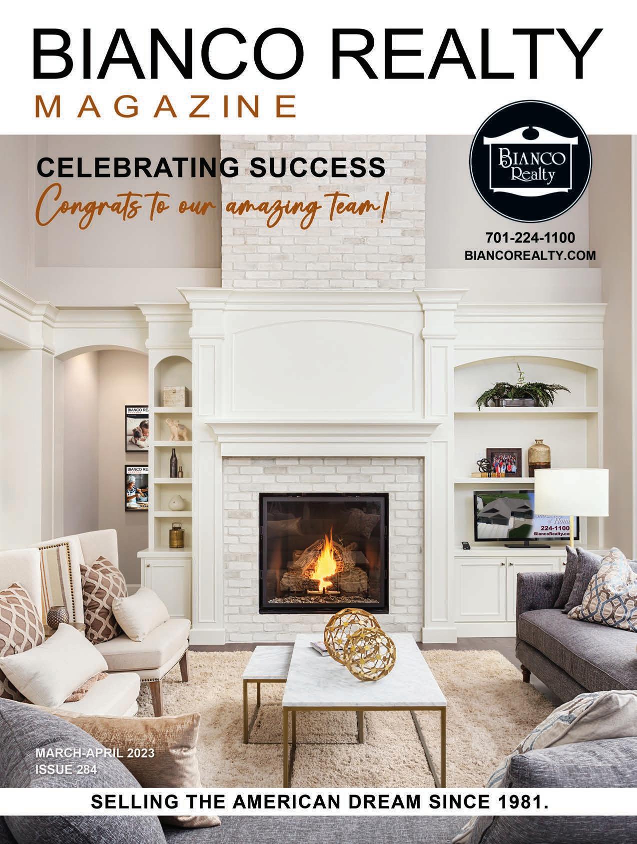 DECEMBER 2022 JANUARY 2023 FREE Market Analysis Char Huelsman REALTOR ® 701.220.5612 Char@BiancoRealty.com MISSY MORITZ FULL TIME REALTOR® CARE • CHARACTER • CALIBER 701-400-7478 “THE HOME HAS ENDLESS LOVE, LAUGHTER AND LAUNDRY” Find that home with me. “Call today for a complimentary market analysis!" THE HOUSING MARKET IS HOT INVENTORY IS LOW There are fewer homes on the market, which means now is a great time to sell. If you are thinking of selling and would like to know what your home may be worth in today’s market, please give me a call; I would love to help. Duane Bentz (701) 527-9194 Duane@BiancoRealty.com REALTOR® 20 YEARS D e c e m b e r a n d J a n u a r y T O P R E A L T O R S ® B i a n c o R e a l t y Keep up the great work! BRENDA