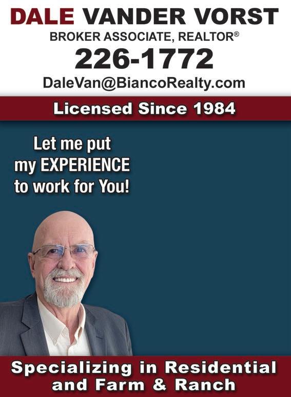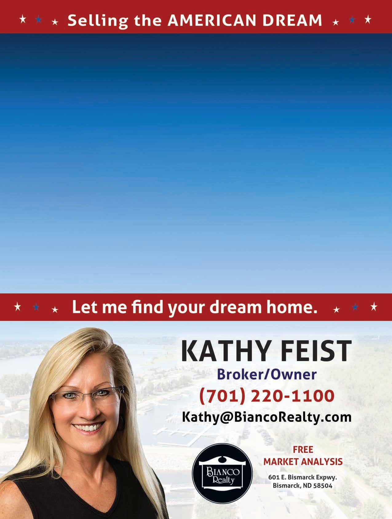 Bianco Realty, Inc. BiancoRealty.com | 12 Call Coop • Dedicated • Knowledgeable • 17 Years of Experience FULL-TIME REALTOR® giving you the attention you deserve coopstroops54@gmail.com BUYING or SELLING CINDY COOPER 701-319-4663 Call me, Brenda Foster, when you’re ready to list or buy a home. Brenda Foster CRS, REALTOR Platinum Award 701-789-1475 BrendaFosterHomes@gmail.com FindNorthDakotaHomes.com Call I’M NOT JUST A REALTOR ®, I’M ALSO YOUR NEIGHBOR 222 4th Ave NW, Hazen $79,500 Large lot, 4 bedrooms, 2 bathrooms & detached garage. 4707 Normandy St, Bismarck $449,900 2,570 sq. ft., 4 bedrooms, 3 baths, Boulder Ridge, fenced backyard & heated garage. 3929 38th St SE, Tappen $475,000 Huge shop, beautiful home and a party house in the back. 238 W Divide Ave, Bismarck $199,500 Large ranch style, fireplace, main floor laundry, sunroom, fenced yard. SOLD SOLD SOLD