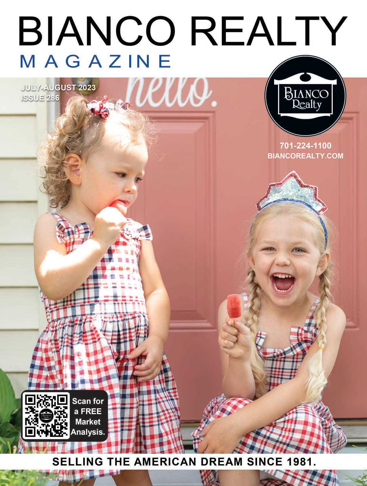 Amy Asche “Platinum REALTOR® Award Recipient” Your Full-Time REALTOR®, CRS (701) 426-0107 Amy@BiancoRealty.com www.WelcomeHomeND.com 2236 SHOAL LOOP SE | MANDAN #4007201 2 bed/2 bath waterfront twinhome, Lakewood, open concept, beautiful views, fireplace, granite & pantry. SOLD 763 MUNICH DRIVE | BISMARCK #4007611 Spacious 4 bedroom, 4 bath home near the golf course. PRICE: $548,000 4011 MORNING STAR DR | MANDAN #4005755 4 bed/4 bath, main floor laundry, gas fireplace, covered deck, walkout basement, 1,382 sq. ft. garage & camper pad. SOLD 1044 E TURNPIKE AVE | BISMARCK #4007284 4 bed/4 bath home with 2,995 sq. ft. finished, vaulted ceilings, new windows, beautiful backyard. PENDING 3401 SHARLOH PL #3 | BISMARCK #4007457 2 bed/2 bath main floor condo, NE Bismarck, open floorplan, center island, attached double garage. PENDING WISHING YOU A HAPPY & SAFE 4TH OF JULY! Call me for your FREE home value or to find your new home!