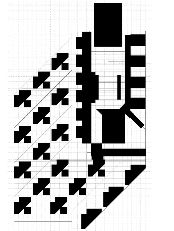 My precedent studies are the Indian Institute of Management campus designed by Louis Kahn and the facade of Palmas 555 in Mexico City, which are two very impressive projects. By transforming the figures of the campus of IIM, new geo metric figures were generated, and then by transforming the facade windows of Palmas 555 to match the figures of campus, new grids were generated.