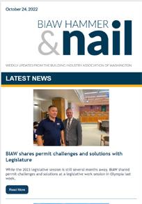 The Hammer & Nail is a weekly eNewsletter that goes out every Monday to a list of just over 14,200* emails. This update contains the latest building industry news, programs, and event information to help members plug in to what is happening at the state and national levels.