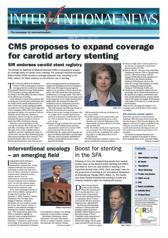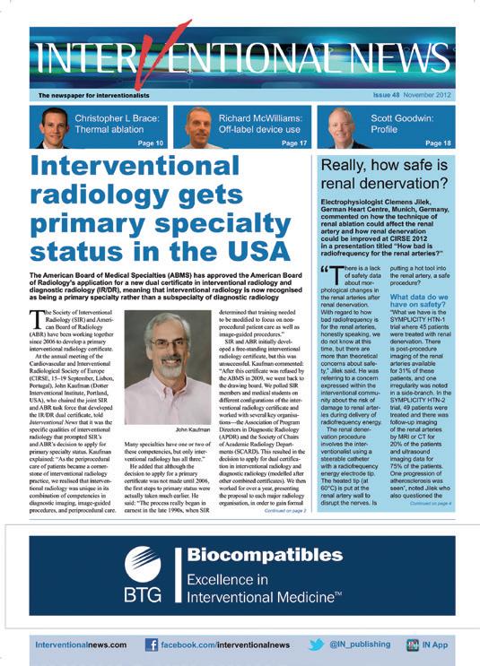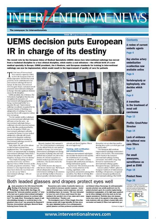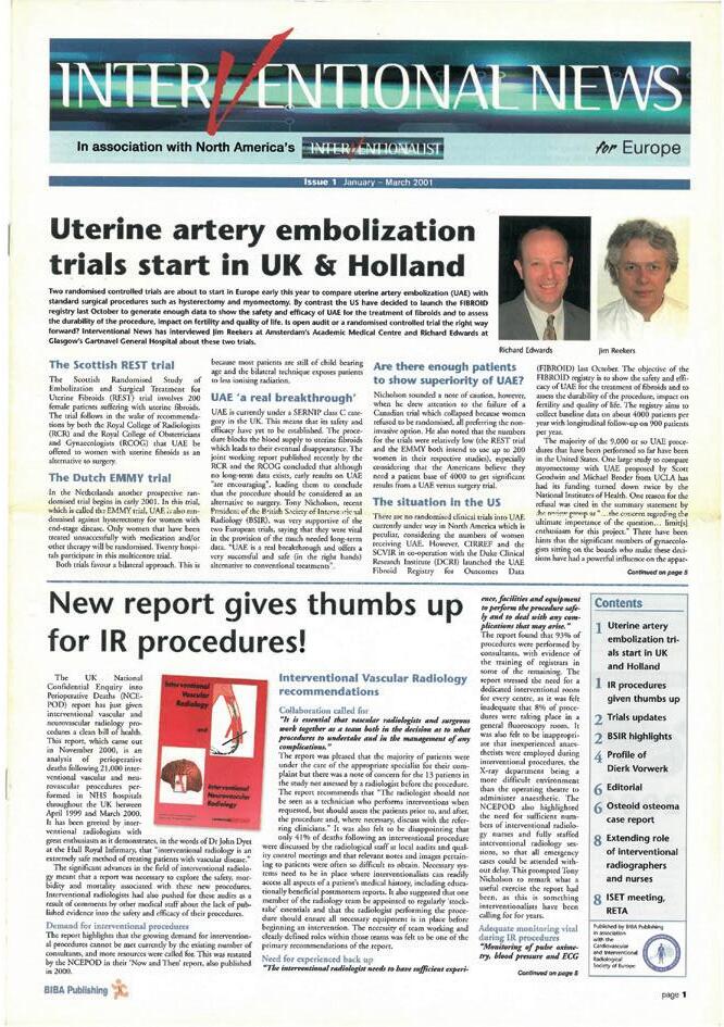 n 100TH ISSUE: Interventional News has evolved in tandem with interventional radiology (IR); as a publication positioned to share details of novel minimally invasive procedures and cutting-edge devices. The specialty’s advancements year on year have provided ample news to fill the pages. Here, we look back at the stories that have defined IR today, celebrating our 100th issue we mark 23 years of delivering the latest in IR.