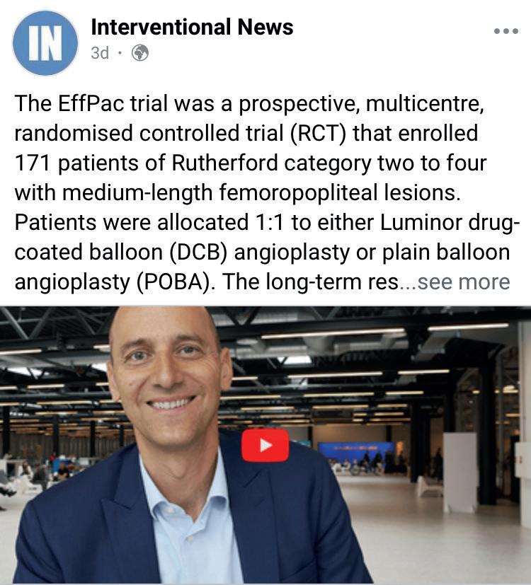 Explaining the rationale for the trials at ESC, co-principal investigator Joakim Nordanstig (University of Gothenburg, Gothenburg, Sweden), said: “Drugcoated balloons and stents have been shown to reduce restenosis and the need for reinterventions in the endovascular treatment of PAD. However, there are uncertainties regarding whether drug-coated devices improve outcomes that are meaningful to patients, quality of life and reducing amputations, and there are some concerns over safety. We investigated these and other endpoints in two trials in PAD—one in chronic limbthreatening ischaemia [CLTI] and one in intermittent claudication—comparing drug-coated and uncoated devices.”