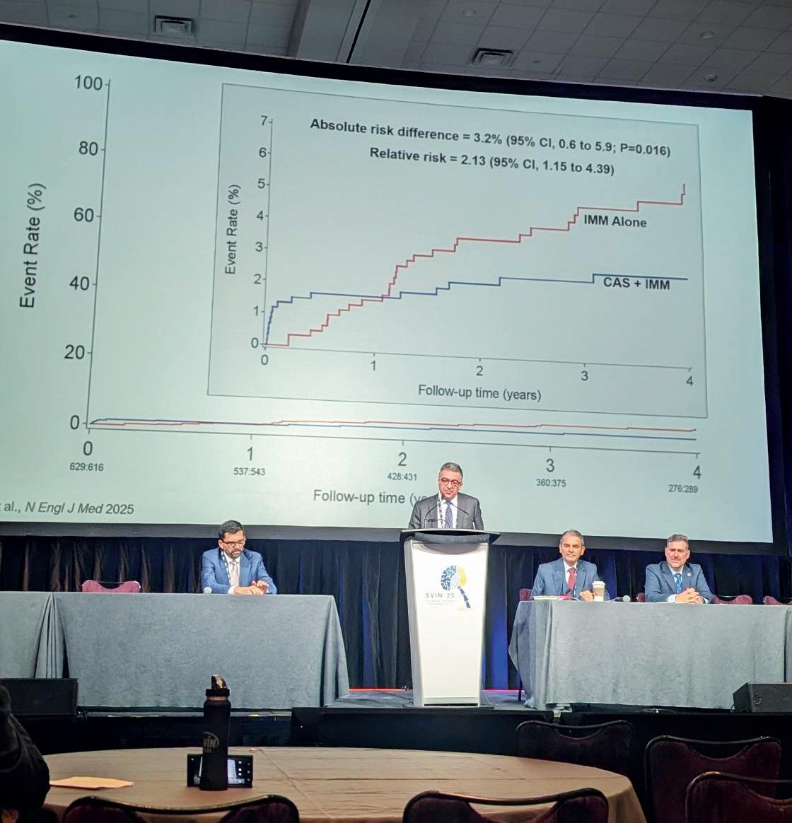 THE LONG-AWAITED presentation of results from the CREST-2 randomised controlled trial (RCT) have shown that the addition of carotid artery stenting (CAS) alongside medical management can reduce stroke risks in patients with asymptomatic high-grade carotid stenosis, while no such reduction was seen with carotid endarterectomy (CEA). These data were met with a positive reception by many in the neurointerventional community but have drawn a more sceptical response from those in other arenas, sparking ongoing debates over the design of CREST-2 and to what extent the trial’s findings can be considered definitive. Arguably foreshadowing the divided reception they have gone on to receive, the key results from CREST-2 were presented in two different places on the same day, with latebreaking data being shared by James Meschia (Mayo Clinic, Jacksonville, USA) at the Society of Vascular and Interventional Neurology (SVIN) annual meeting (19–22 November 2025, Orlando, USA) and also by co-principal investigator (PI) Brajesh Lal (University of Maryland, Baltimore, USA) at the VEITHsymposium (18–22 November 2025, New York, USA).