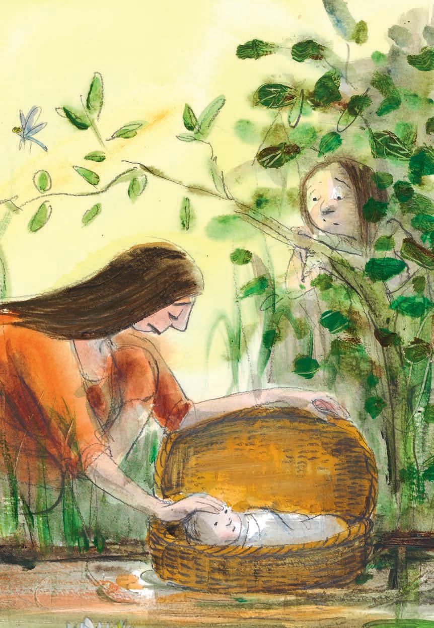Hans søster havde gemt sig et sted på Nilens bred tæt ved den lille siv-kurv, som hun holdt øje med.