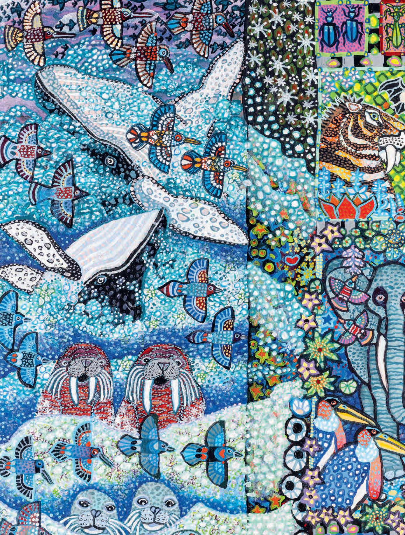 Det regner og regner, og der er dyr alle vegne. Kan du se, hvor løverne har gemt sig? Og kan du finde de to pindsvin? Hvad med den hvide due?