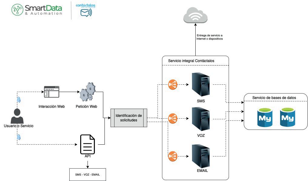 Solución 100% cloud apalancada con tecnología que permite automatizar la comunicación masiva entre las empresas con sus usuarios a través de SMS, llamadas y correos electrónicos, garantizando un ahorro operativo y experiencia al usuario más personalizada.