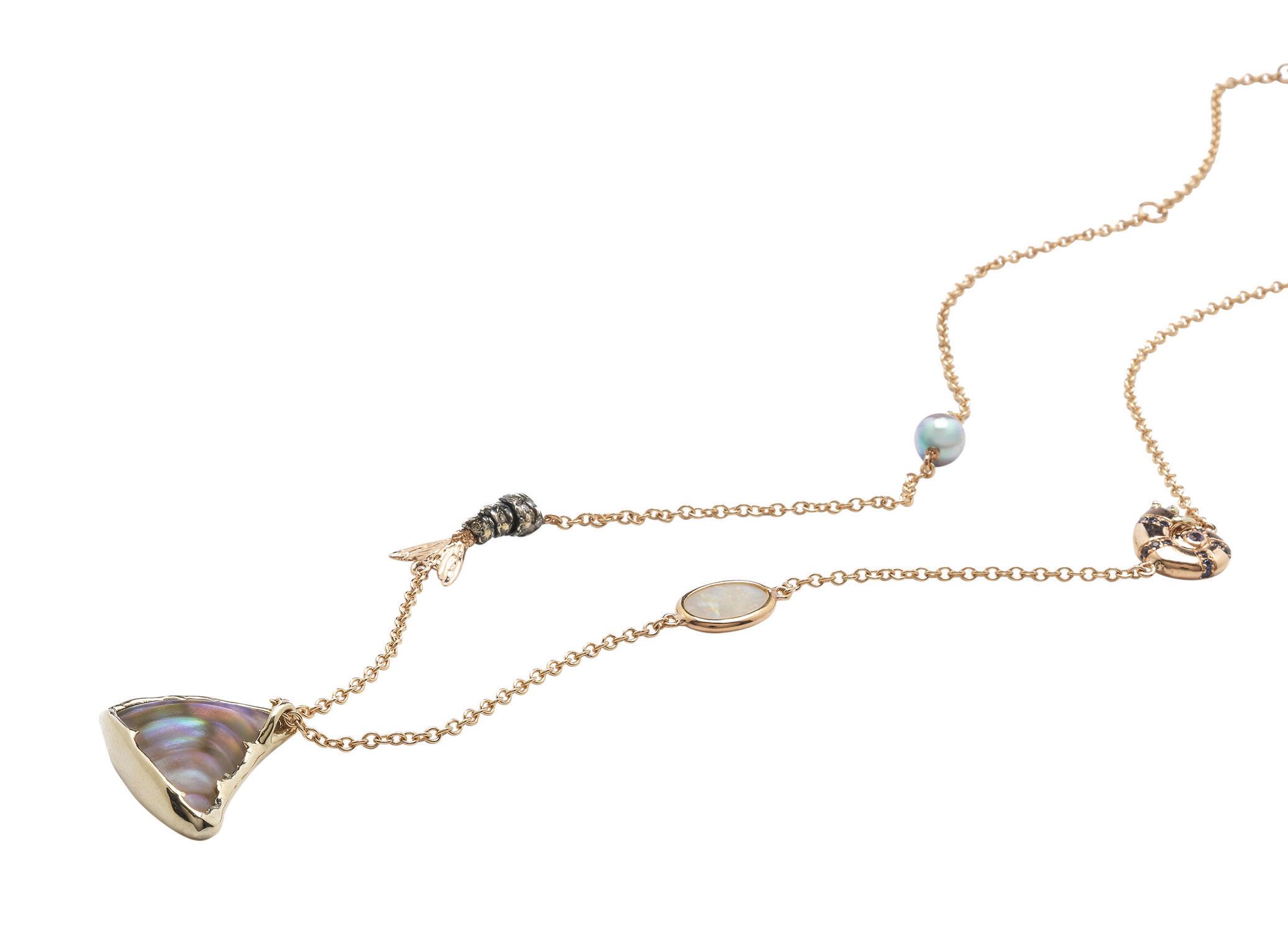 18K Pure White Gold, 18K Rose Gold, Sterling Silver, Opal, Pearl, Blue and Purple Sapphires, Mother of Pearl, Rock Crystal