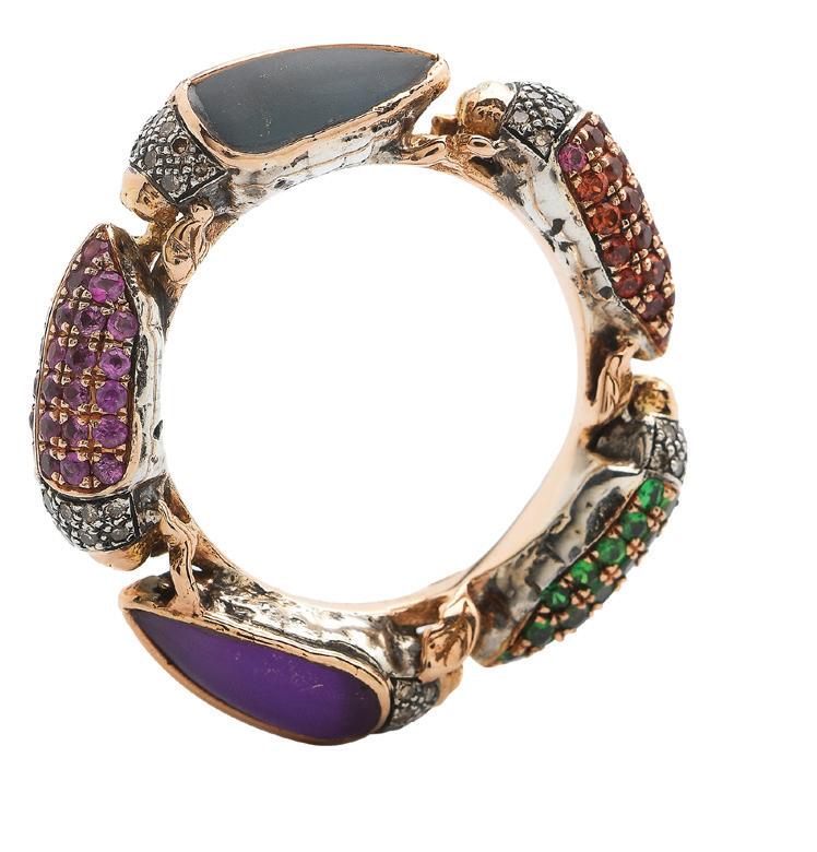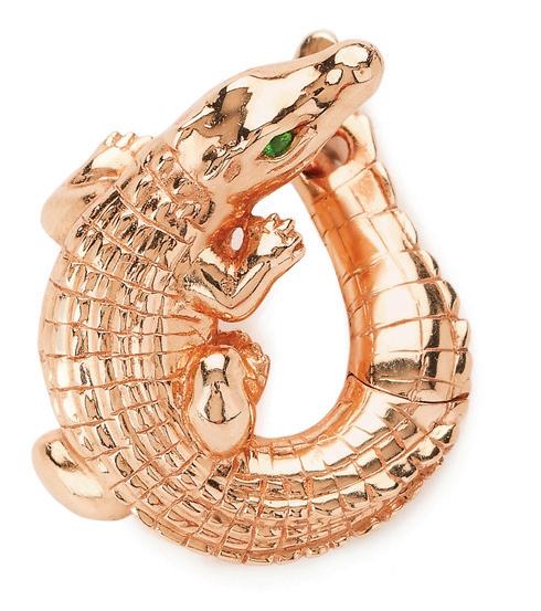 The Alligator family continues to grow in personality and pieces, innovating new techniques to twist, wrap as well as add ‘bite’ to earrings, rings and necklaces. Transformative pieces combine a sense of fun with skillfully crafted jaws that ‘snap’ shut and bodies ‘twist’ into a wrap ring or bracelet. Carved gemstones, include amethyst, citrine, opal, lapis, sapphires and diamonds. Beware of eyes that catch the light and flash in tsavorite.