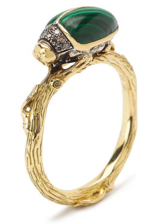 18K Yellow Gold, Sterling Silver, Brown Diamonds, Malachite