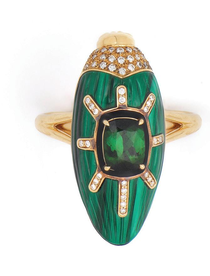 18K Yellow Gold, White Diamonds, Tsavorites 13