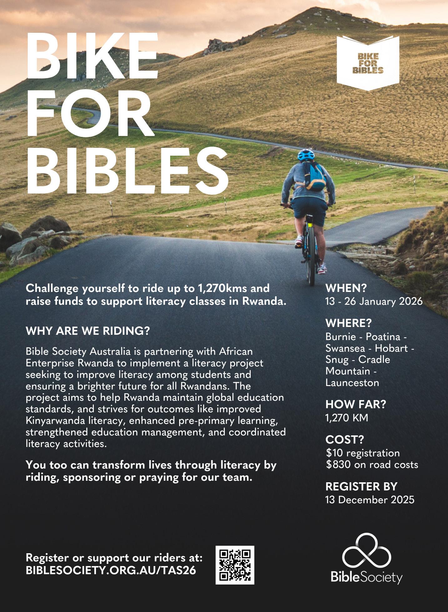 If you want to consider your own fundraising hike or events, contact church@biblesociety.org.au. To read more, visit biblesociety.org.au/blog.