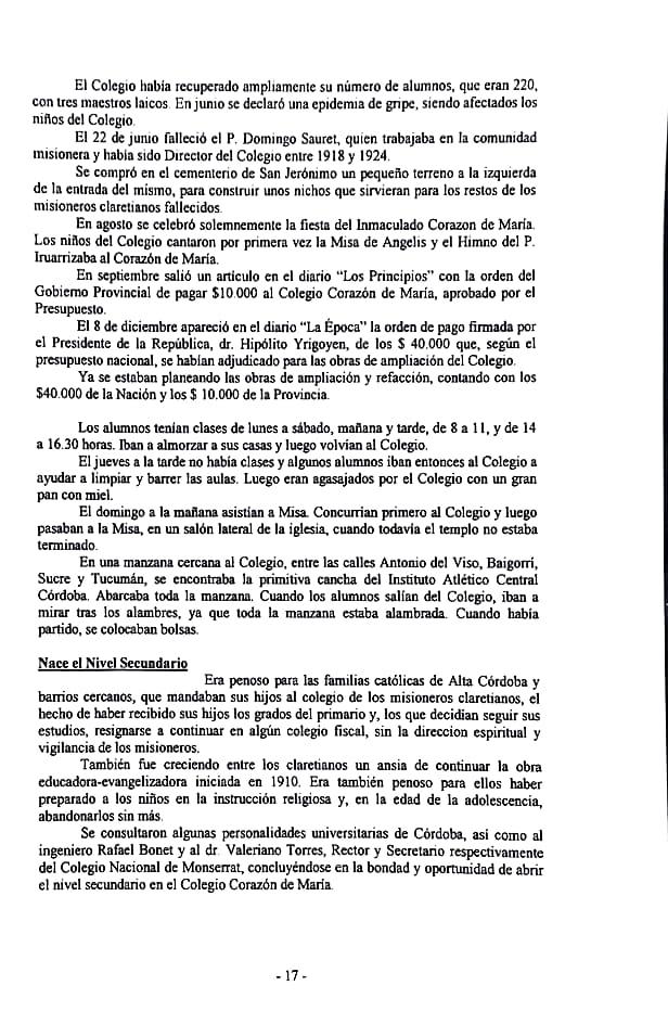 C anos en mision. Los Clarelianos en rgentina y Uruguay, 1901-2001 Editorial Claretiana, . elados durante la administración del RP.10-ntorme ector del Colcgio Corazón de María de la ciudad dBem Córdoba", Ingeniero Carlos Héctor Rodriguez, Córdoba, diciembre 20 de 1993.enier