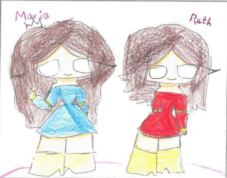 Un dia al Regne de les Roses hi havia dues bessones , una dolenta i l'altre bona ,es deien Ruth i Maria. Al dia següent van venir al Regne uns convidats molt especials. La Maria va sortir a saludar, els convidats es van quedar bocabadats de veure-la! Era tan bonica! Quan va sortir la Ruth no le deien res, era bonica però no impressionant. La Ruth es va enfadar tant que no volia parlar amb ningú. La Maria va arribar a la seva habitació, ella volia saber què li passava però la Ruth li va dir que marxés. Després van passar els dies escoltant com aclamaven a la Maria, la Ruth estava farta i se li va ocórrer una grandíssima idea. Va escoltar als seus pares com deien que la Maria seria la heredera del Regne. La Ruth volia cridar però no ho va fer , la Ruth se'n va anar al bosc i es va trobar una bruixa!. Era l’ocasió perfecte per dir-li que le dones un conjur i va arribar l'hora de sopar ! Li va posar el conjur al got i la Maria va veure la beguda.