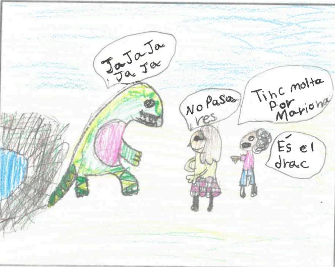 Un dia va comprar un drac, gran, amb un vol suau y planer El drac, cuidava a ella i als germans, ningú gosava a apropar-se a ells. va arribar un dia, que es va fer gran i va emmalaltir Els guerrers el assabentar-se, van voler invair el castell.
