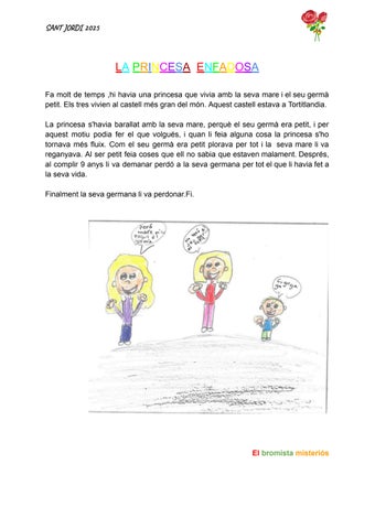 La princesa s'havia barallat amb la seva mare, perquè el seu germà era petit, i per aquest motiu podia fer el que volgués, i quan li feia alguna cosa la princesa s'ho tornava més fluix. Com el seu germà era petit plorava per tot i la seva mare li va reganyava. Al ser petit feia coses que ell no sabia que estaven malament. Després, al complir 9 anys li va demanar perdó a la seva germana per tot el que li havia fet a la seva vida.
