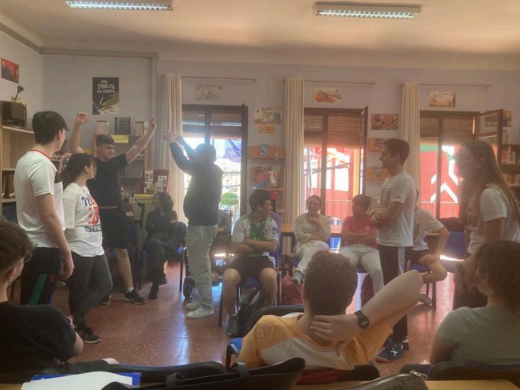 Estas imágenes nos muestran una improvisación de una escena de ruptura de pareja que hicieron los alumnos de 1º de Bachillerato en la que explicaba cómo es representar una escena con todos sus trabajadores y las complicaciones y los fallos que pueden ocurrir.