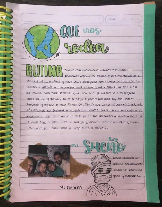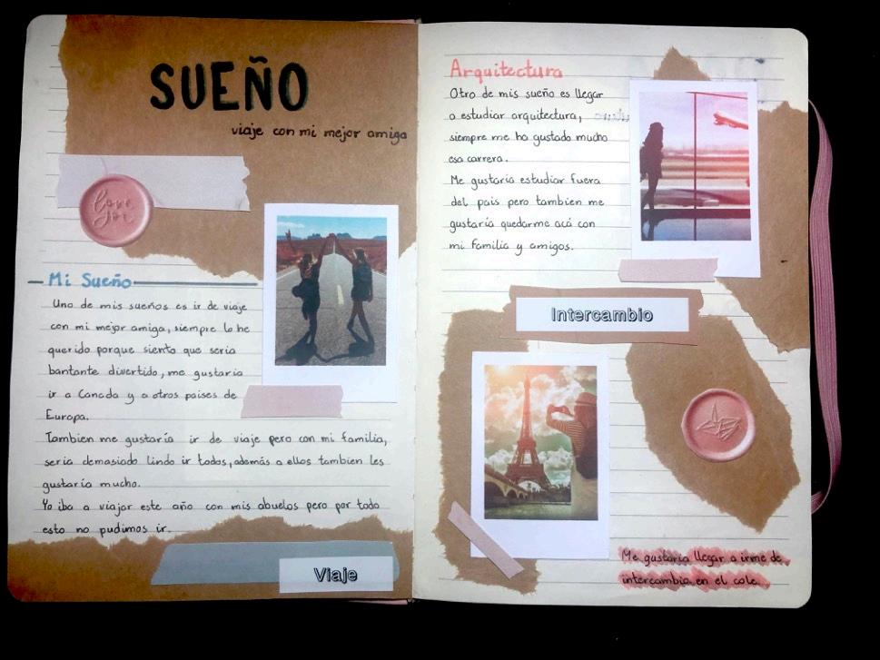 Me gustó mucho haber realizado el diario ya que es un trabajo que en lo especial se quiere conservar porque es diferente y personal. Es un trabajo más artístico y libre donde cada quien lo hacía a su manera. Considero que es un bello recuerdo que cuando pase la pandemia nos va a gustar volver a verlo. La parte que más me gusto hacer fue donde coloqué cuales son mis sueños o cosas que quiero volver a hacer. En especial porque coloque fotos con mis amigos, de lugares a donde quiero ir.