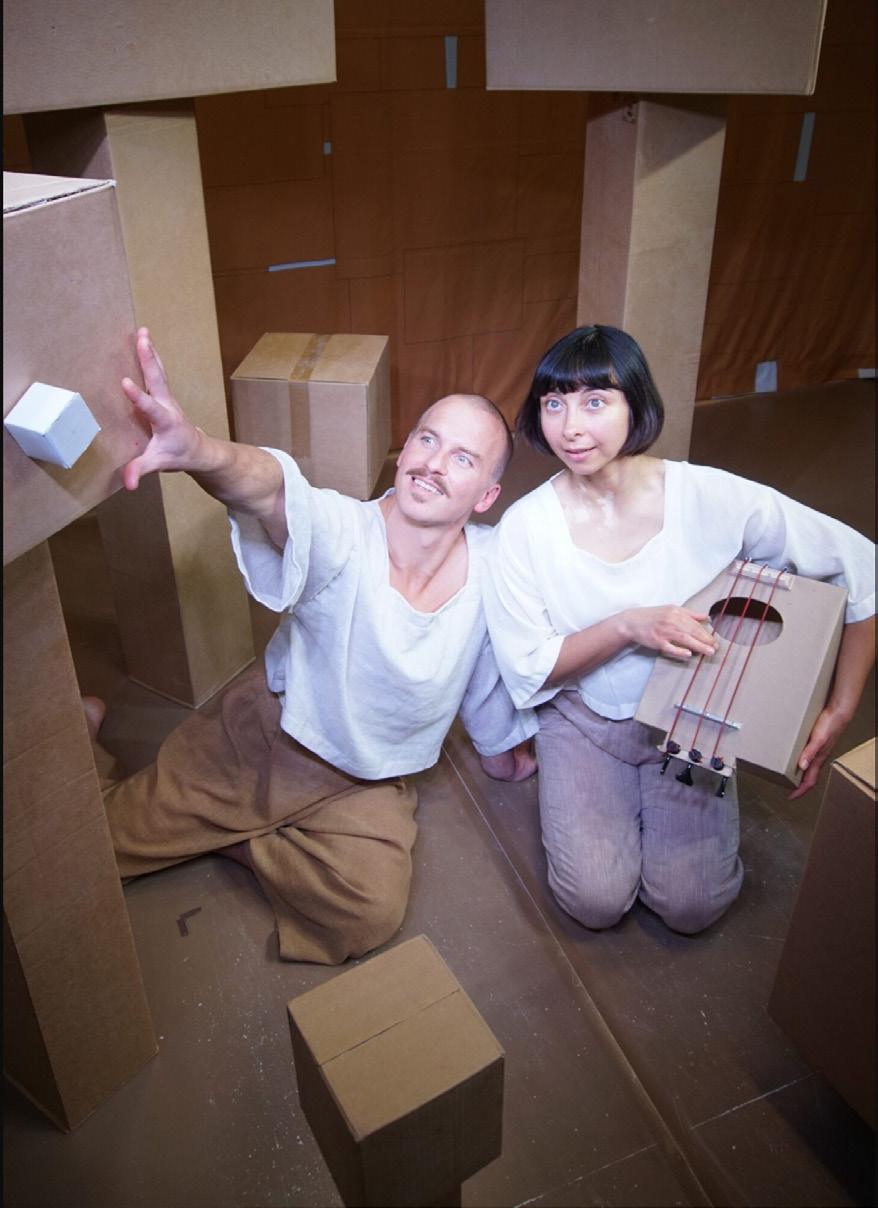 Med humor og poesi forvandles en bunke klodser til et farverigt, genkendeligt miniunivers. En ordløs forestilling, hvor to elegant klædte sorte skikkelser trin for trin opbygger et miniunivers af små og store klodser, yndefulde skyggebilleder og kæmpestore, røde garnnøgler.
