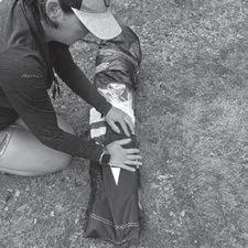 15. Once bladder has been completely fed into the sleeve, untie the string from the wing tips.